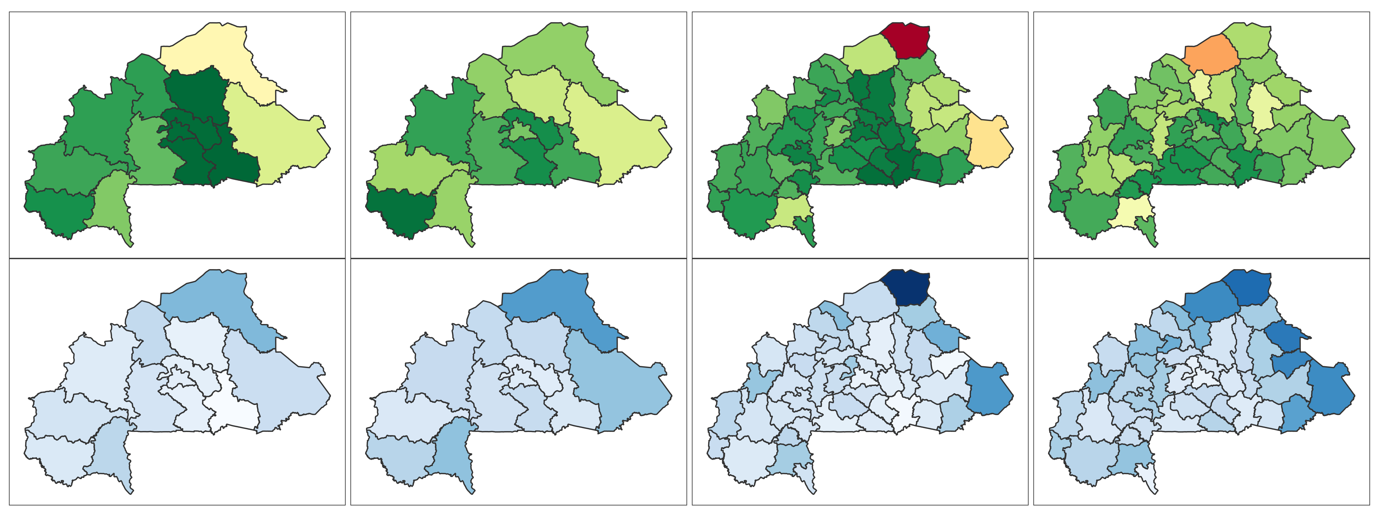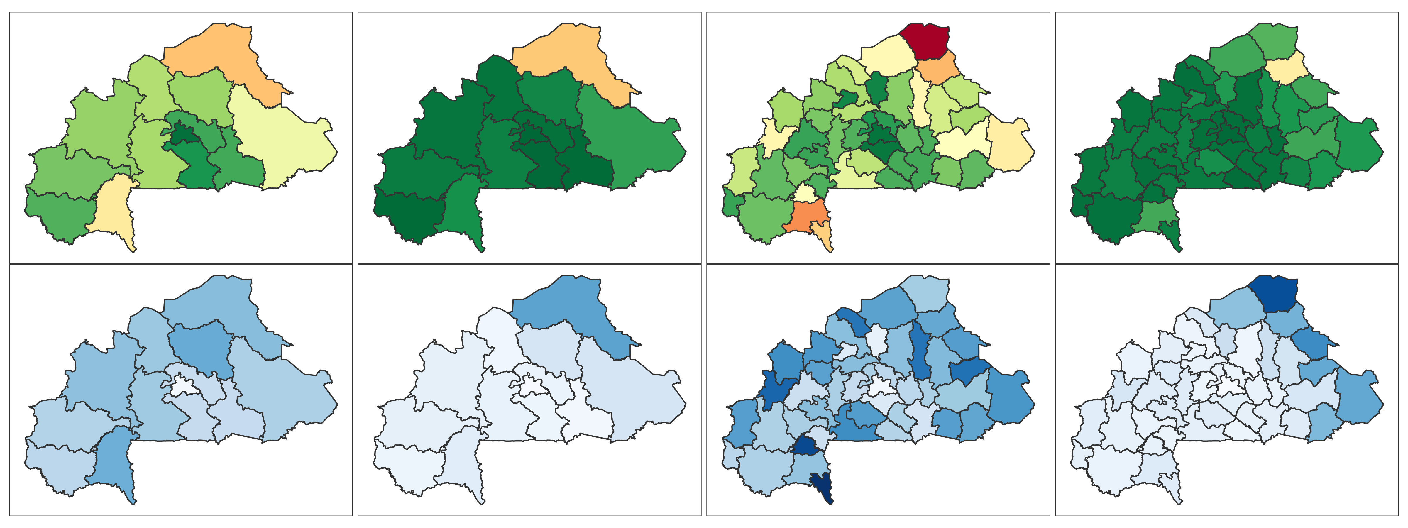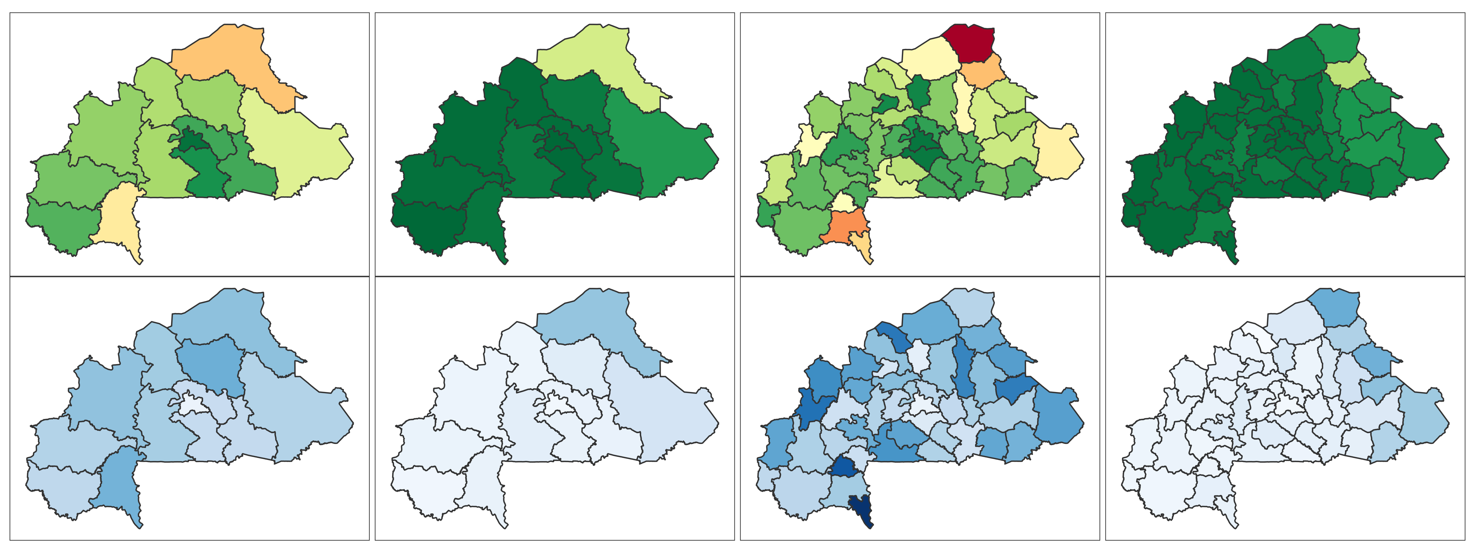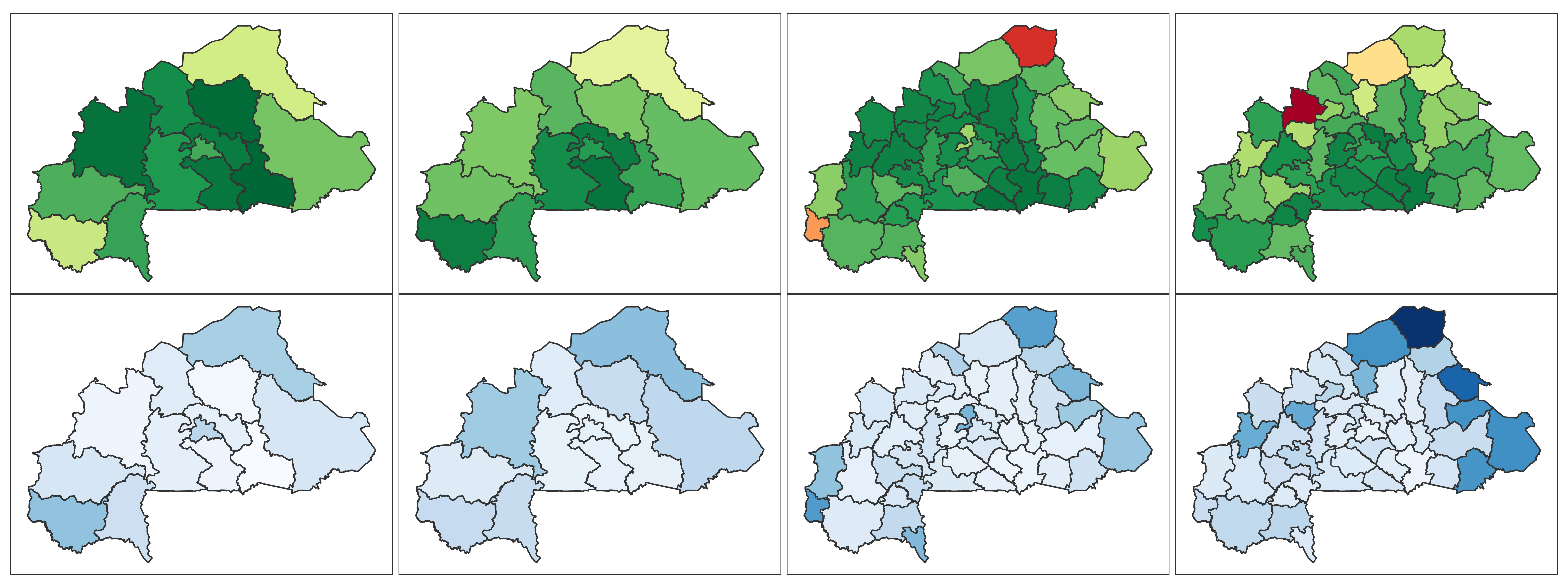 Burkina Faso 📄 Download Report Regions Provinces Baseline Endline Baseline Endline (2010) (2021) (2010) (2021) 4+ ANC Visits Delivery by Skilled Provider Delivery in Health Facility Modern Contra- ception DTP3 MCV1 No Vaccine Stunting Wasting ITN Mobile Phone Education Literacy Lowest 2 Wealth Quintiles