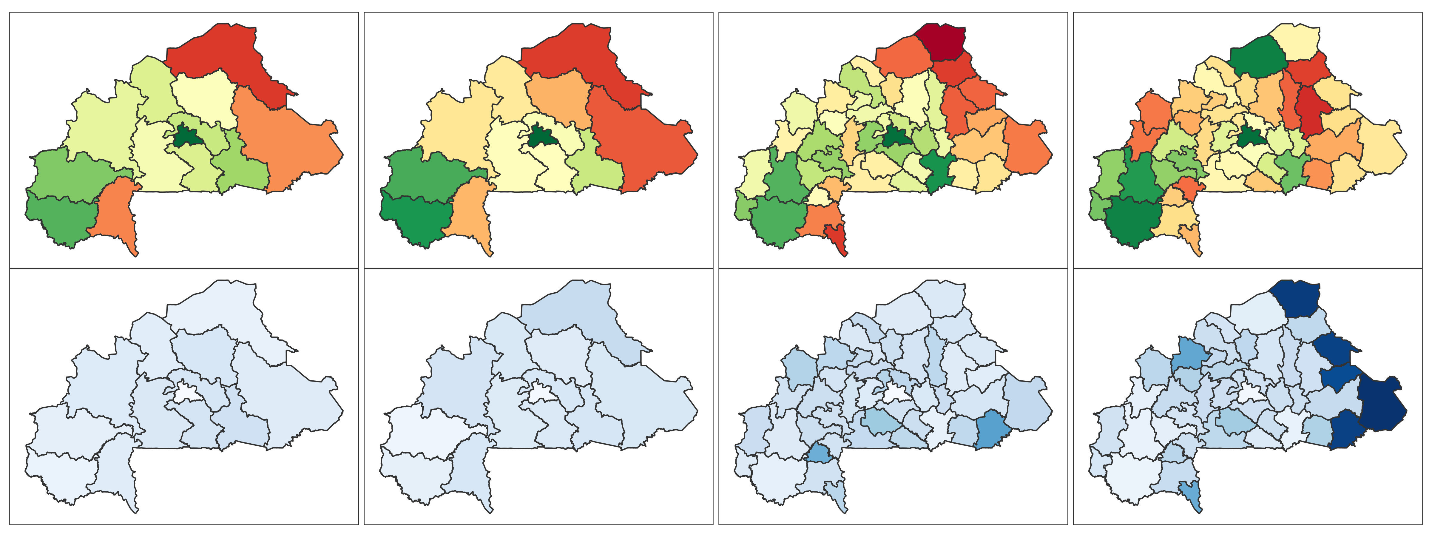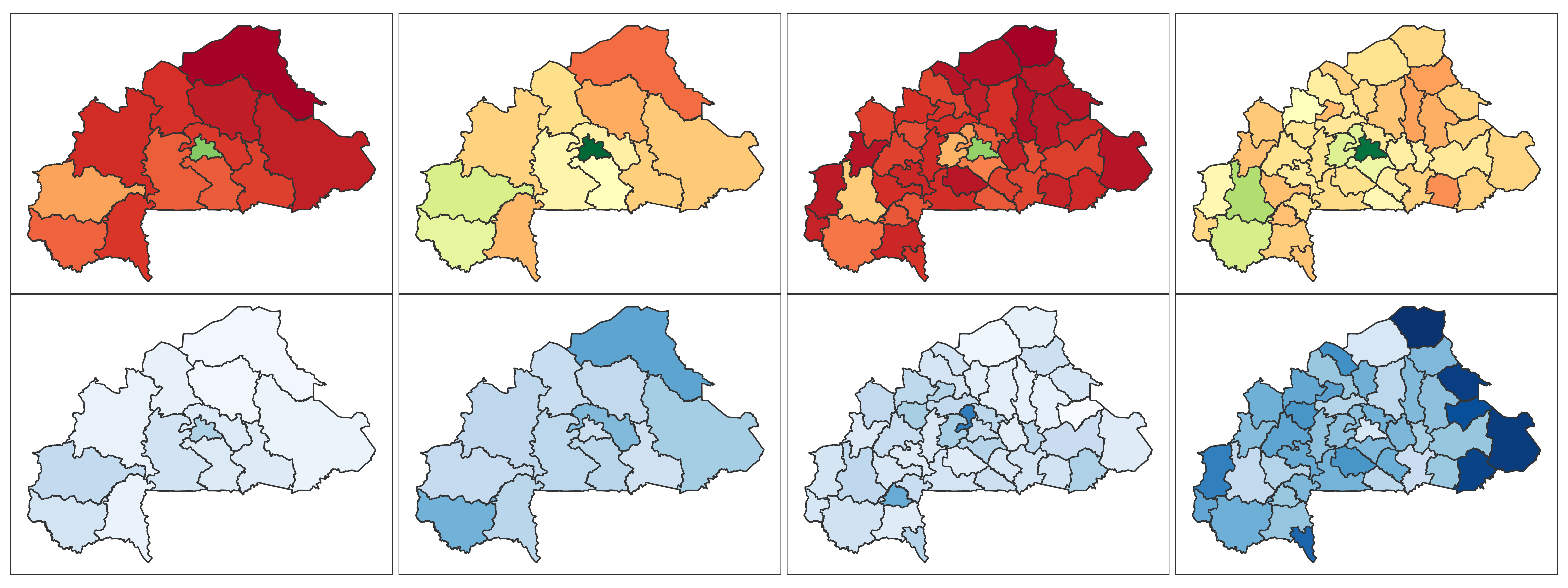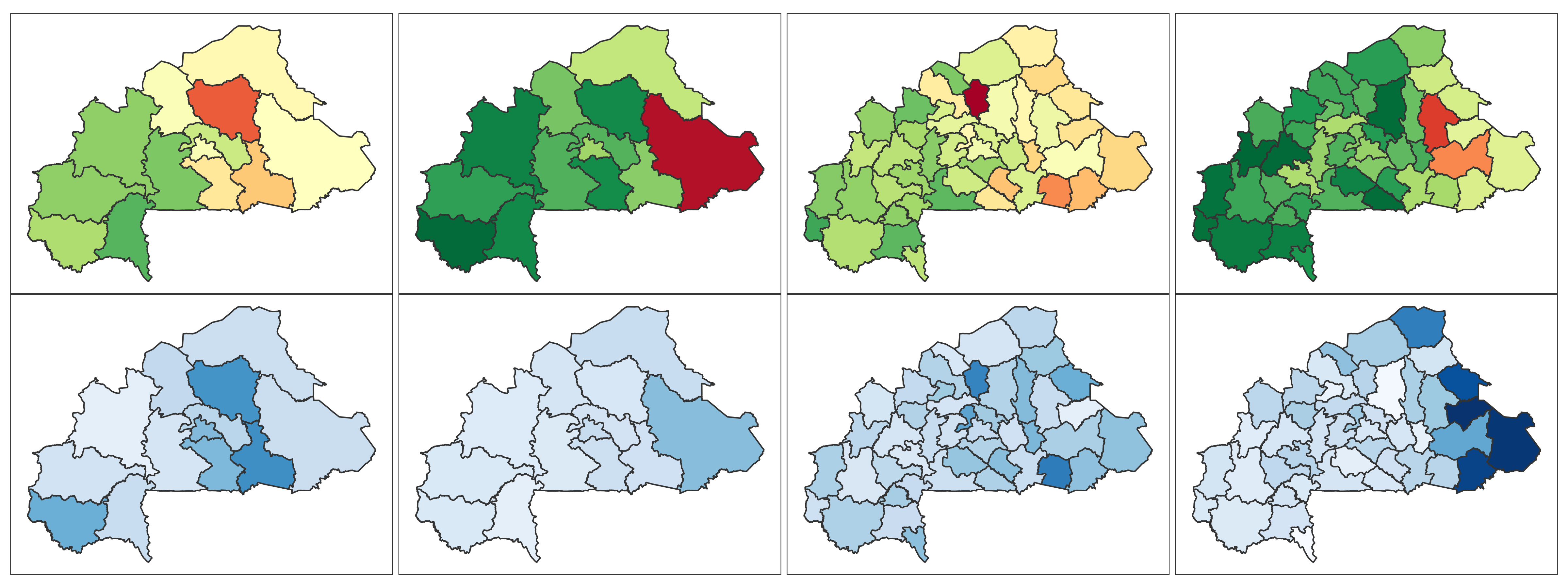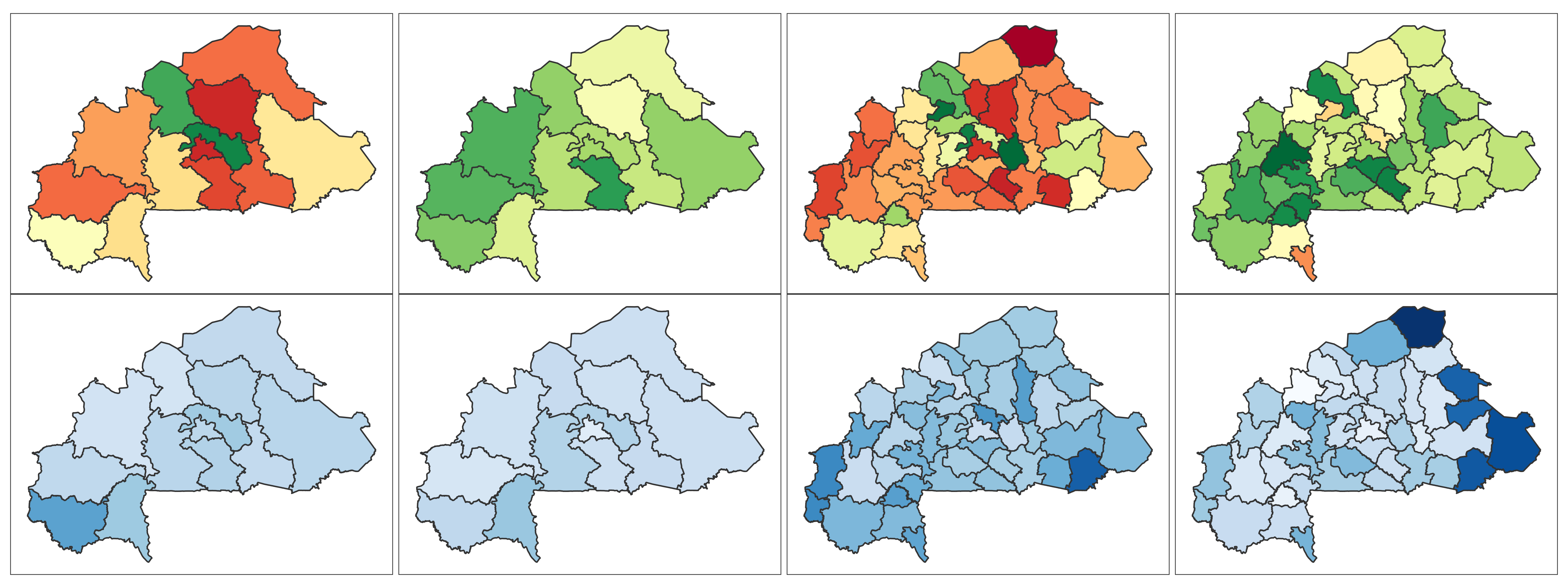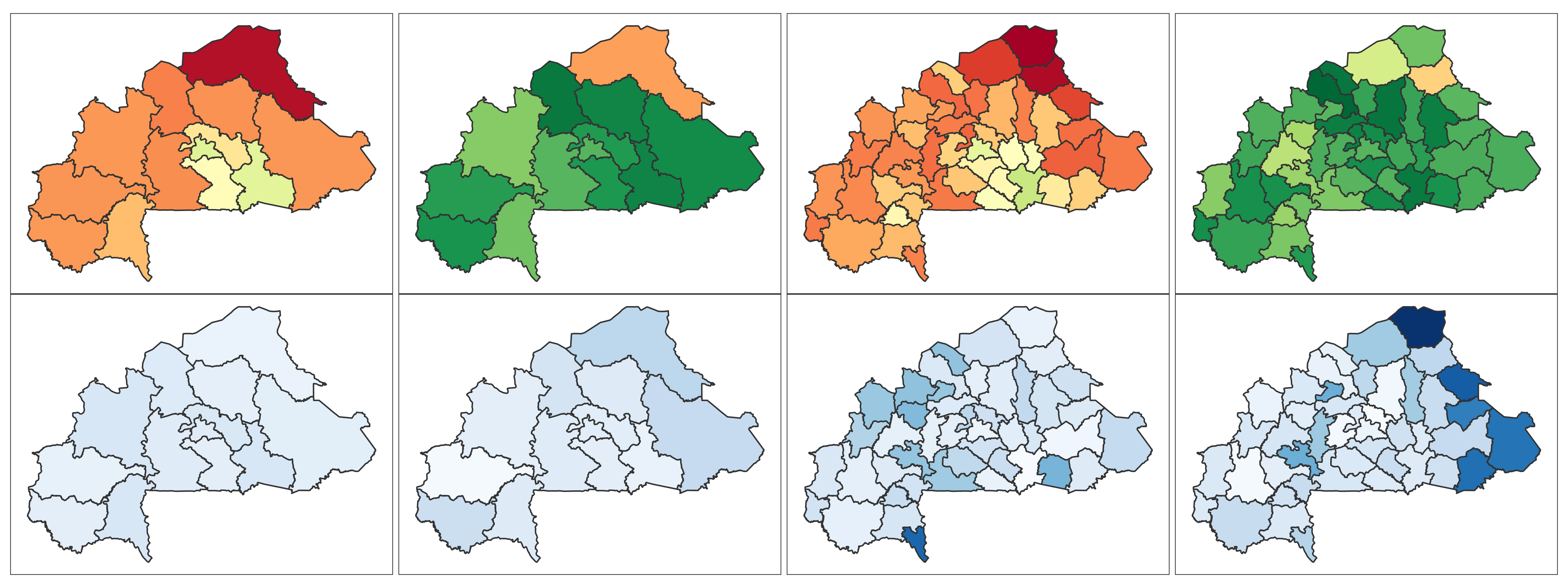 Burkina Faso 📄 Download Report Regions Provinces Baseline Endline Baseline Endline (2010) (2021) (2010) (2021) 4+ ANC Visits Delivery by Skilled Provider Delivery in Health Facility Modern Contra- ception DTP3 MCV1 No Vaccine Stunting Wasting ITN Mobile Phone Education Literacy Lowest 2 Wealth Quintiles