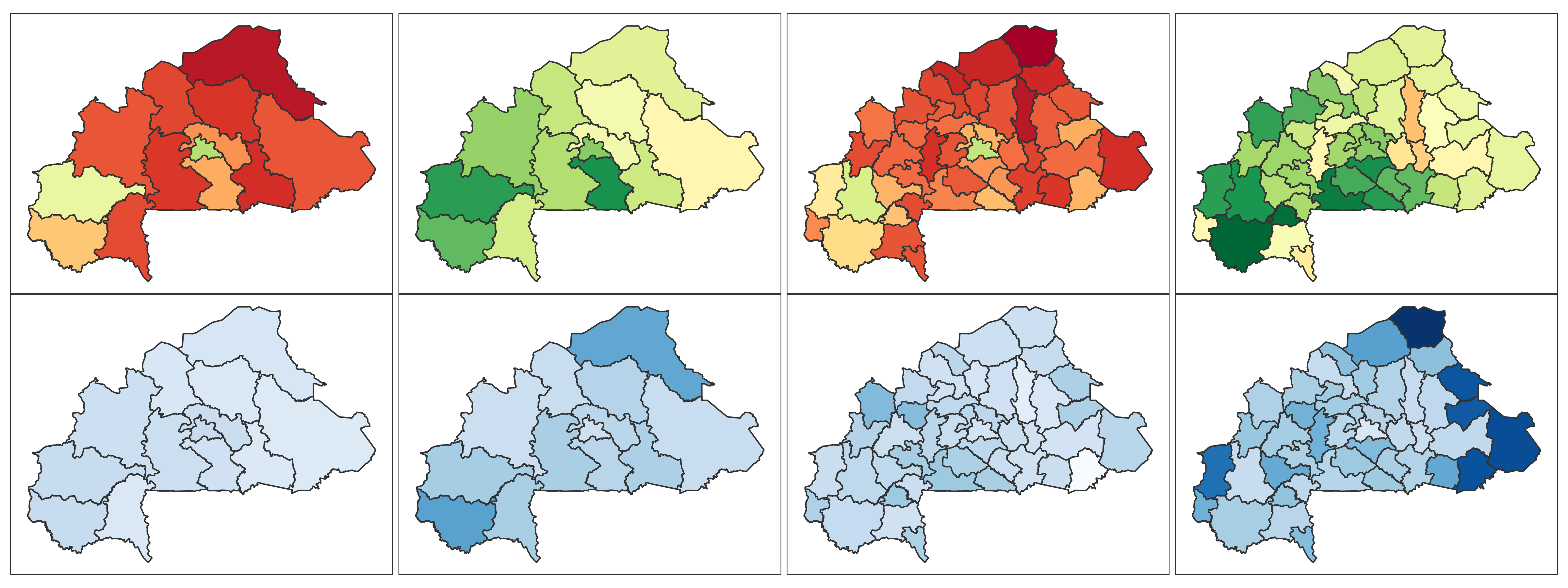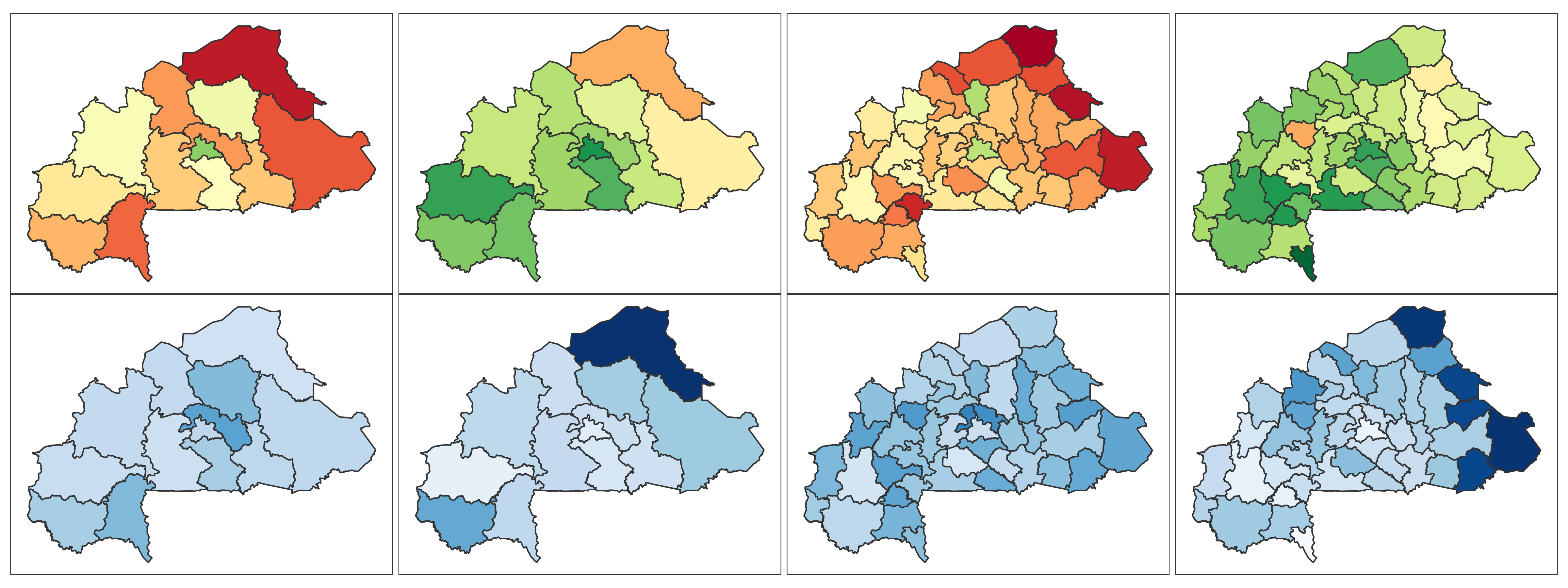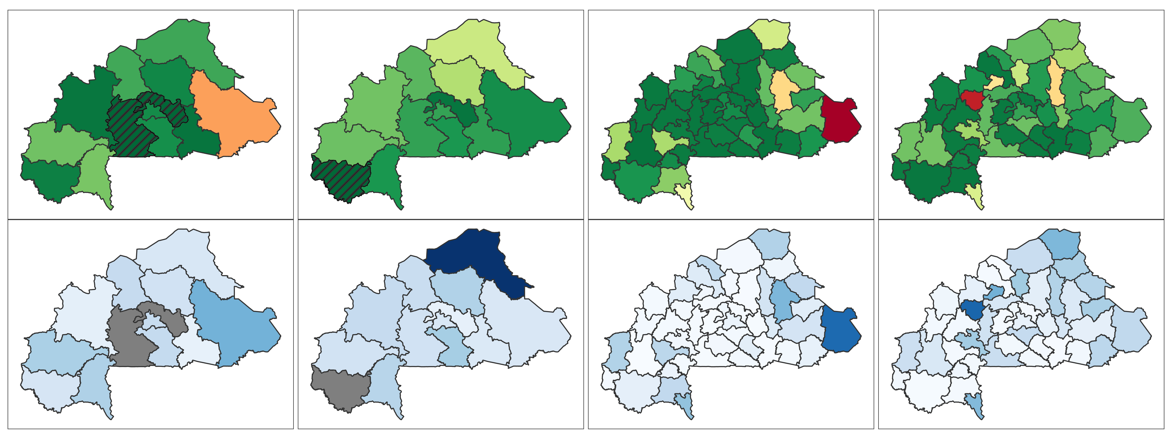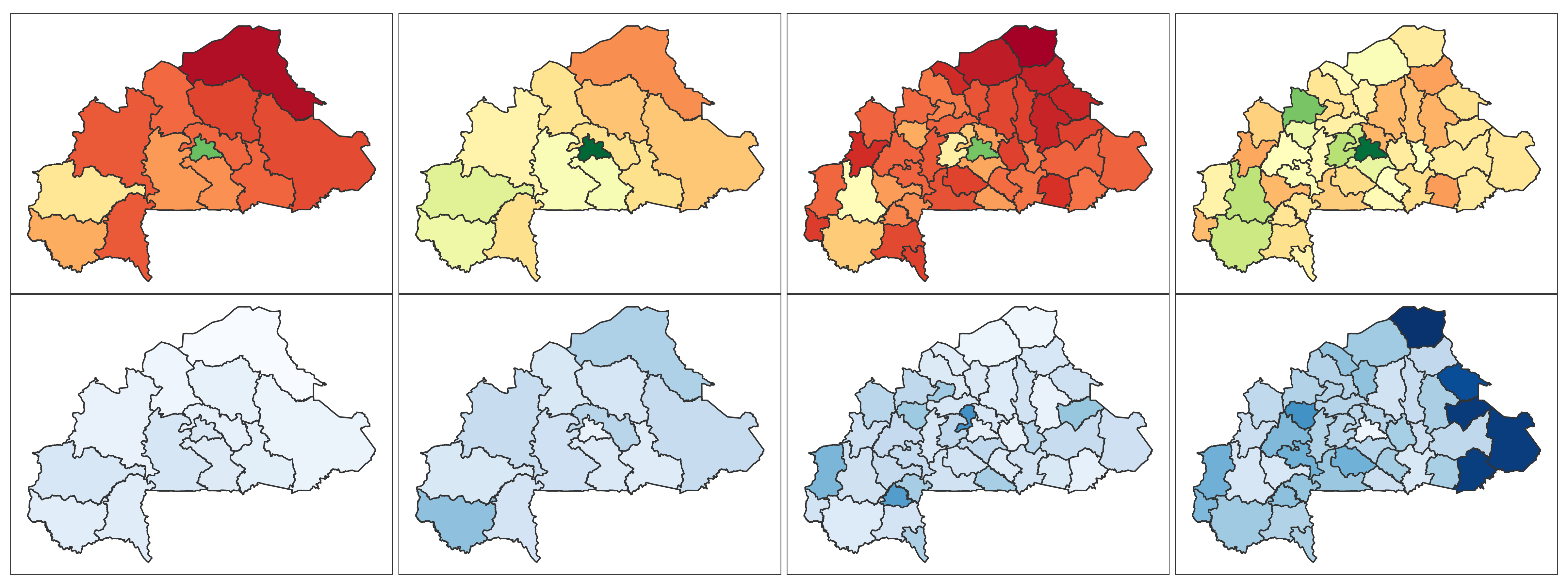 Burkina Faso 📄 Download Report Regions Provinces Baseline Endline Baseline Endline (2010) (2021) (2010) (2021) 4+ ANC Visits Delivery by Skilled Provider Delivery in Health Facility Modern Contra- ception DTP3 MCV1 No Vaccine Stunting Wasting ITN Mobile Phone Education Literacy Lowest 2 Wealth Quintiles
