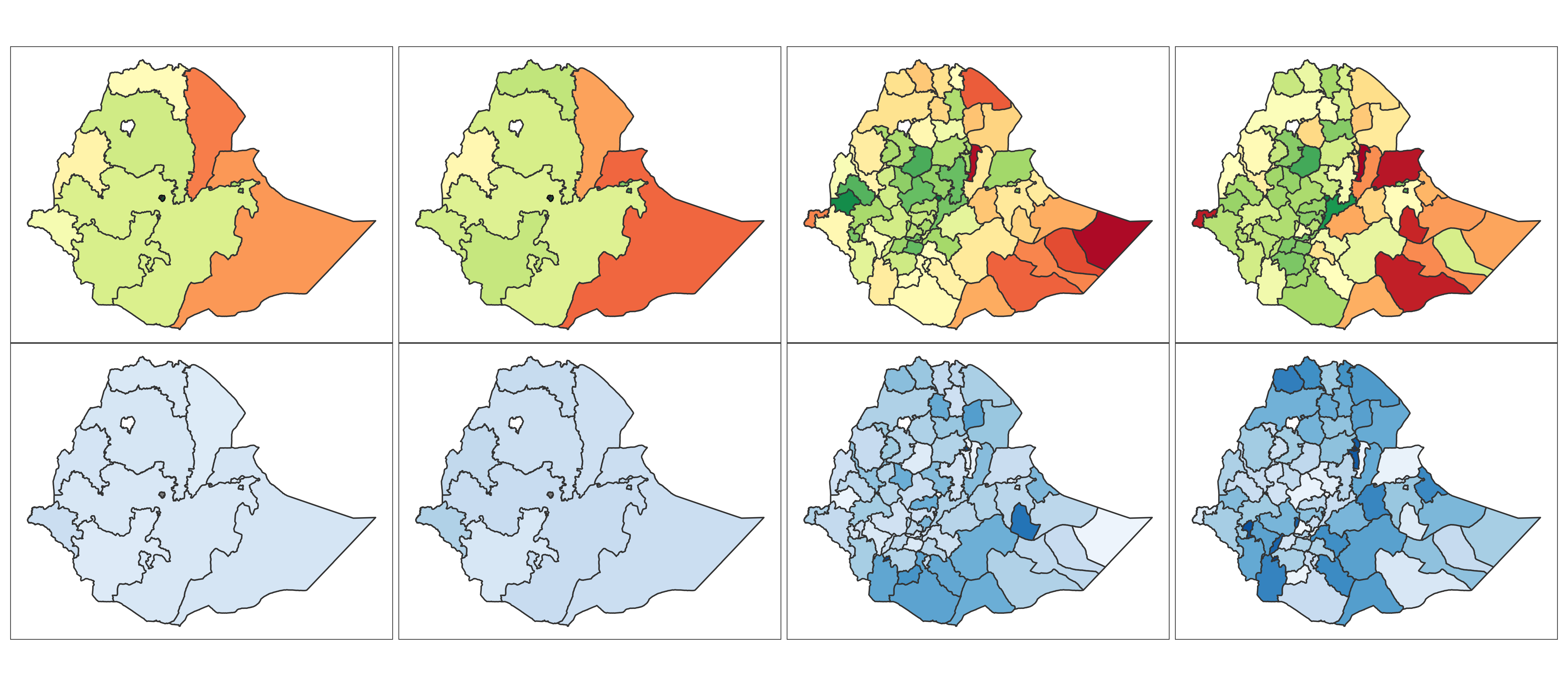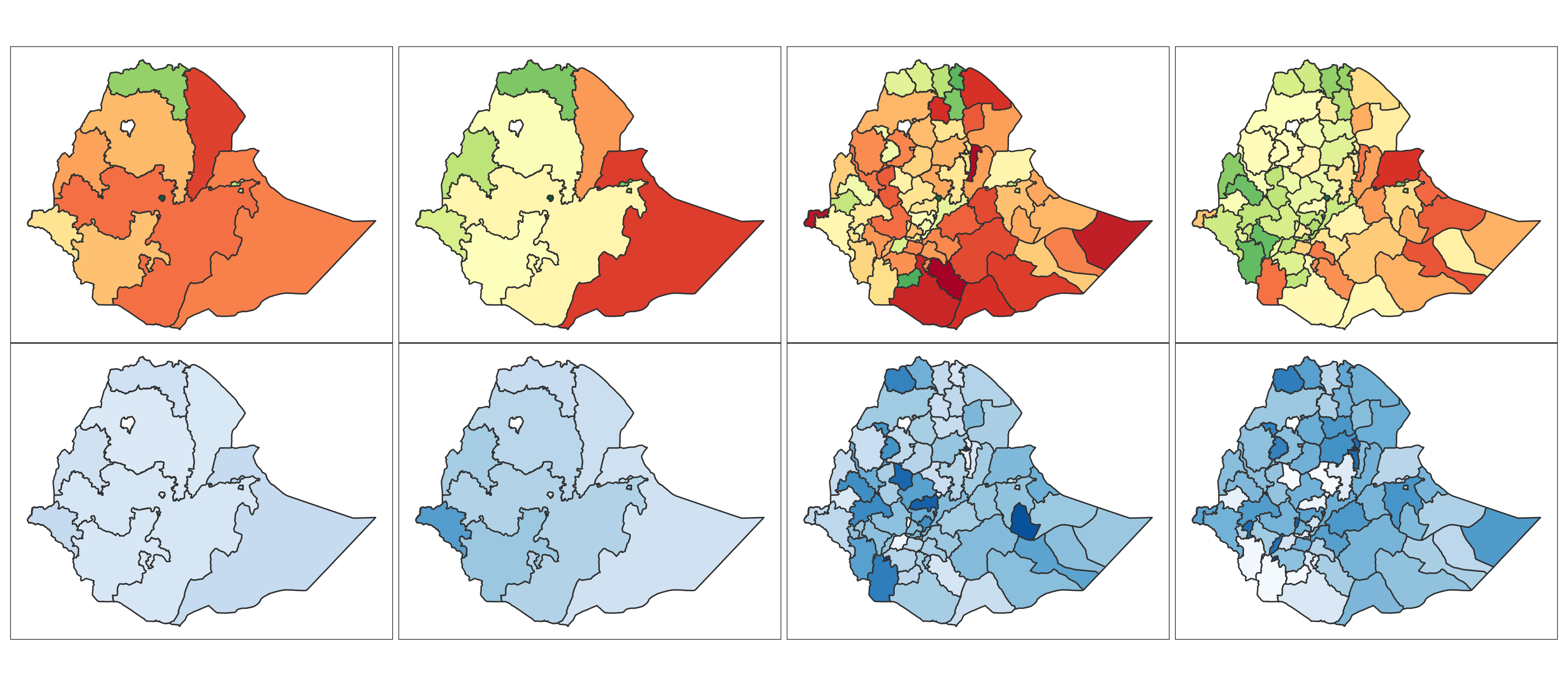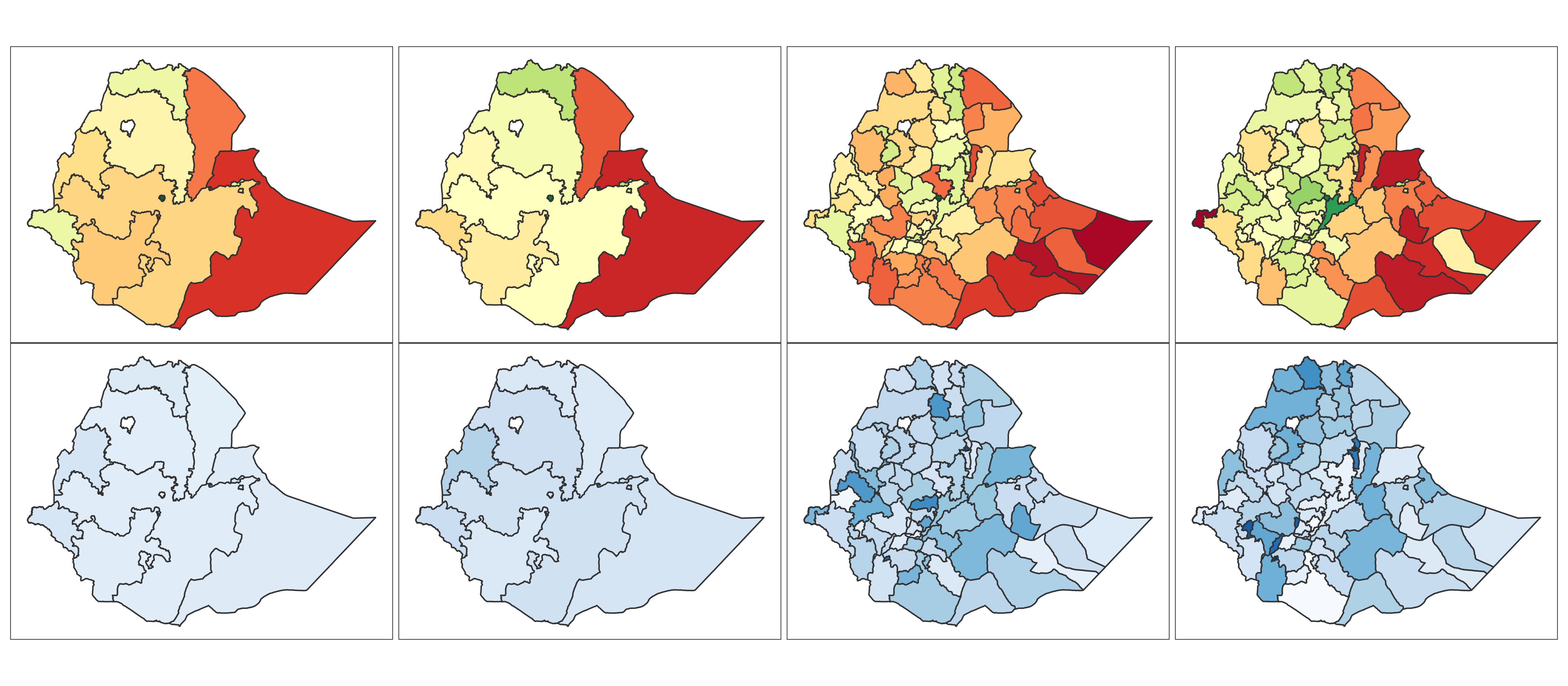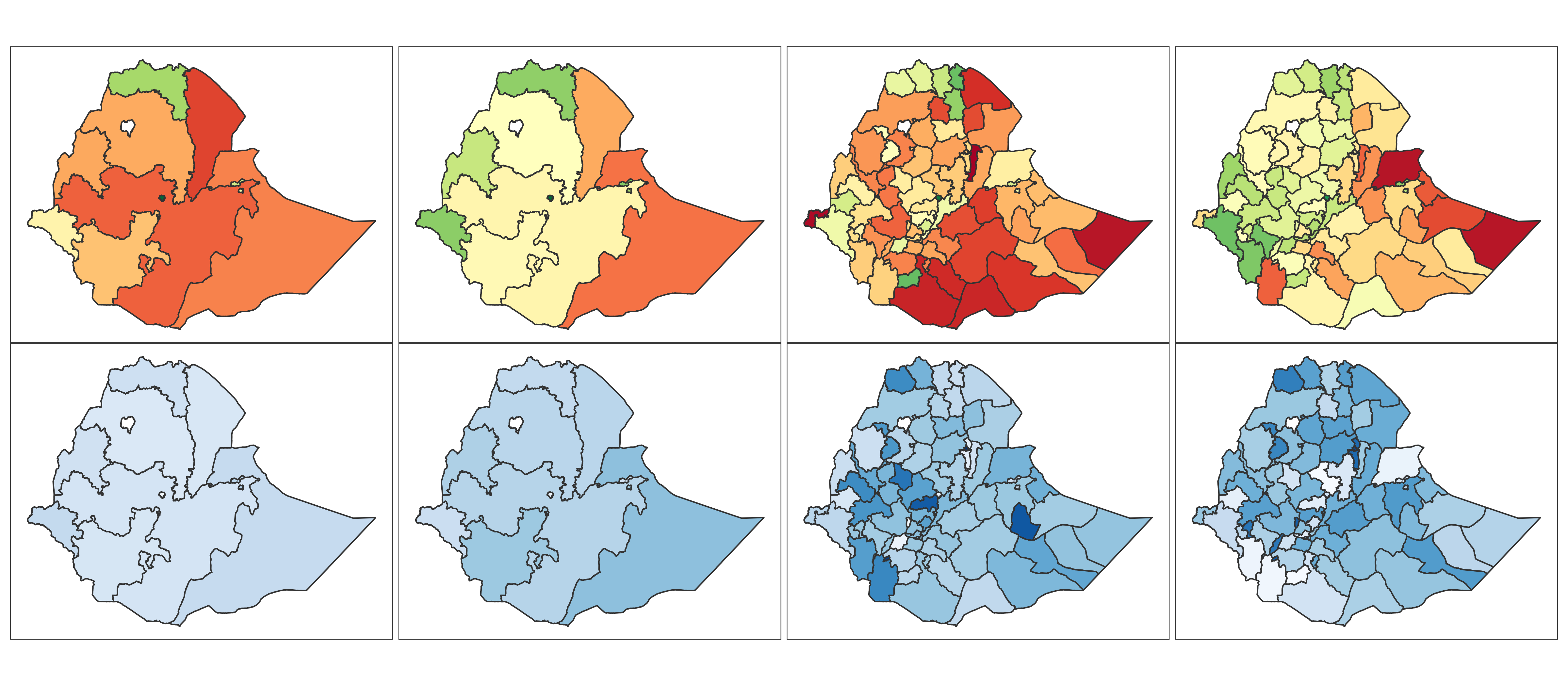 Ethiopia 📄 Download Report Regions Zones Baseline Latest Baseline Latest (2016) (2019) (2016) (2019) 4+ ANC Visits Delivery by Skilled Provider Delivery in Health Facility Modern Contra- ception DTP 3 coverage MCV 1 coverage No Vaccination received Stunting prevalence Wasting prevalence Women with secondary or higher education Women who are literate Lowest 2 Wealth Quintiles