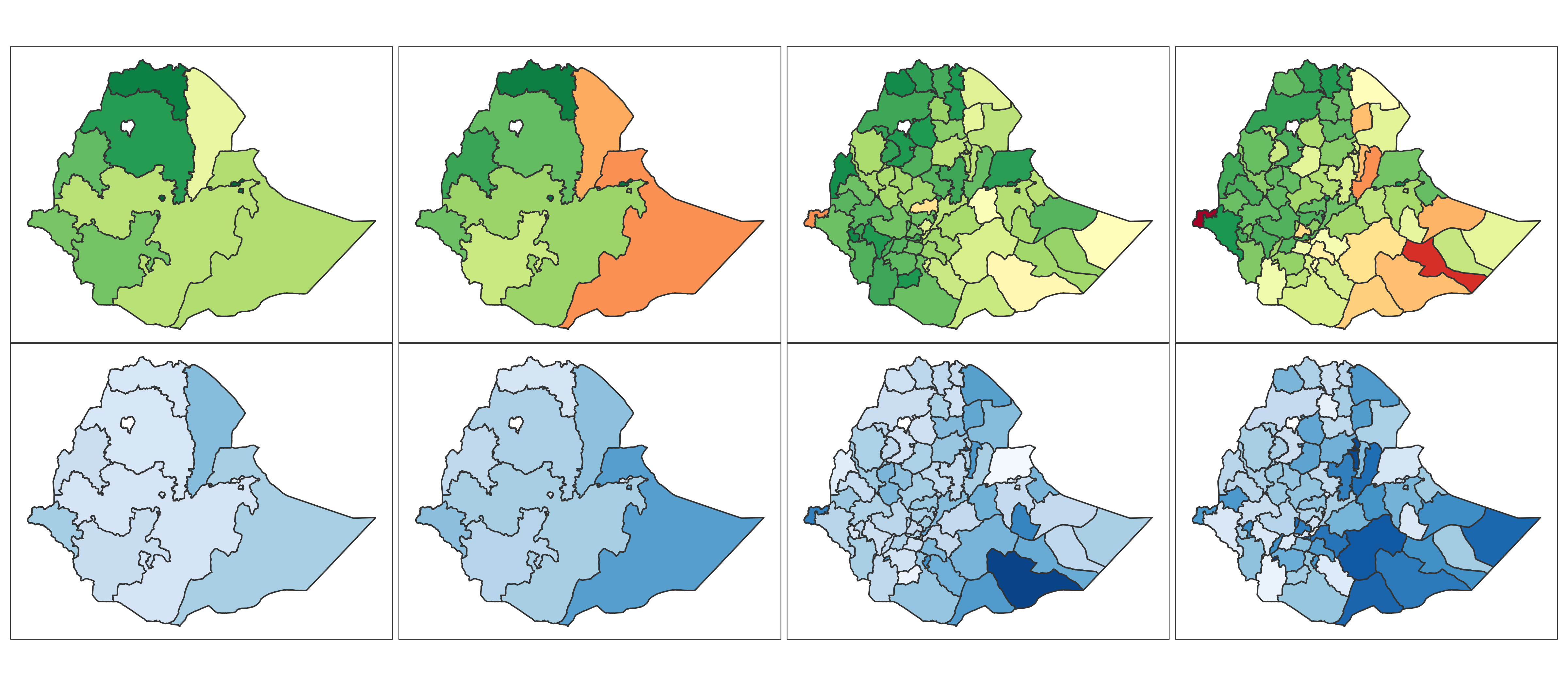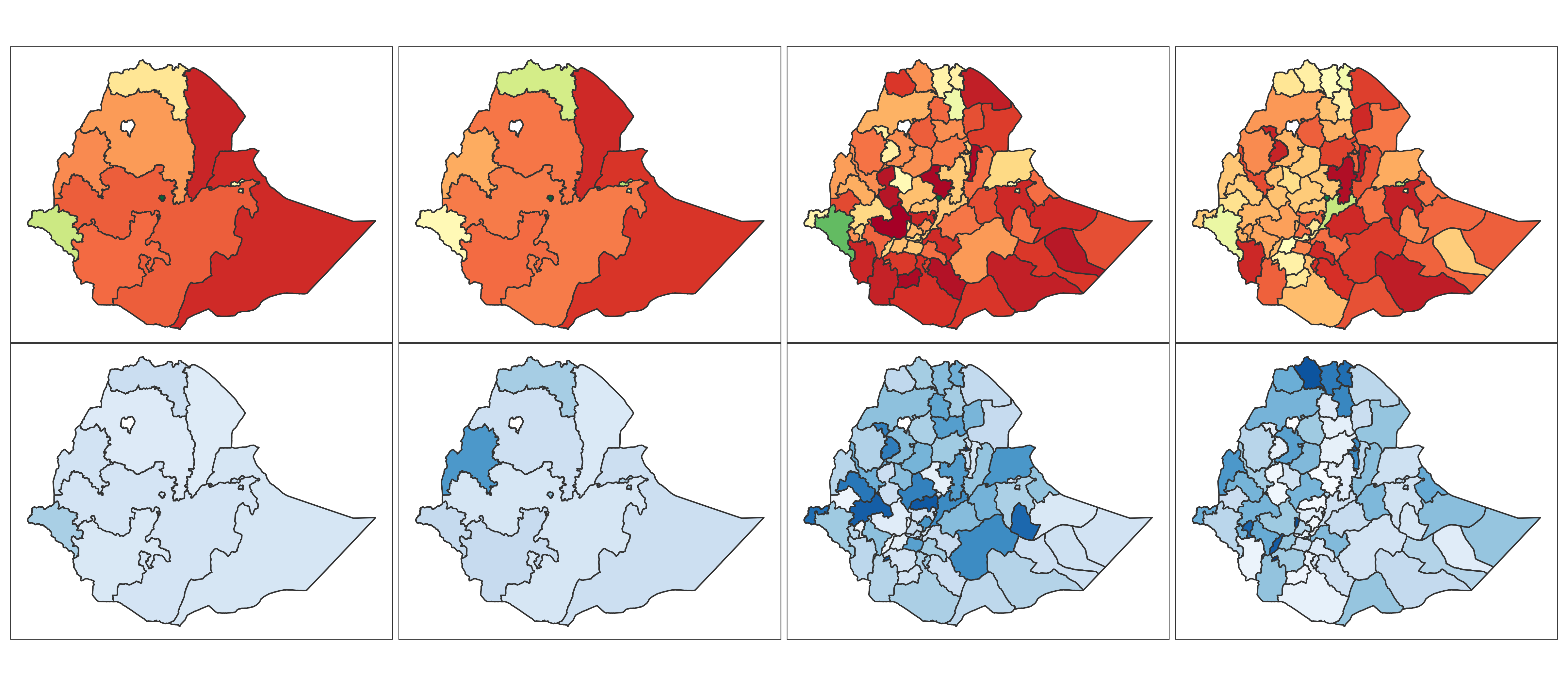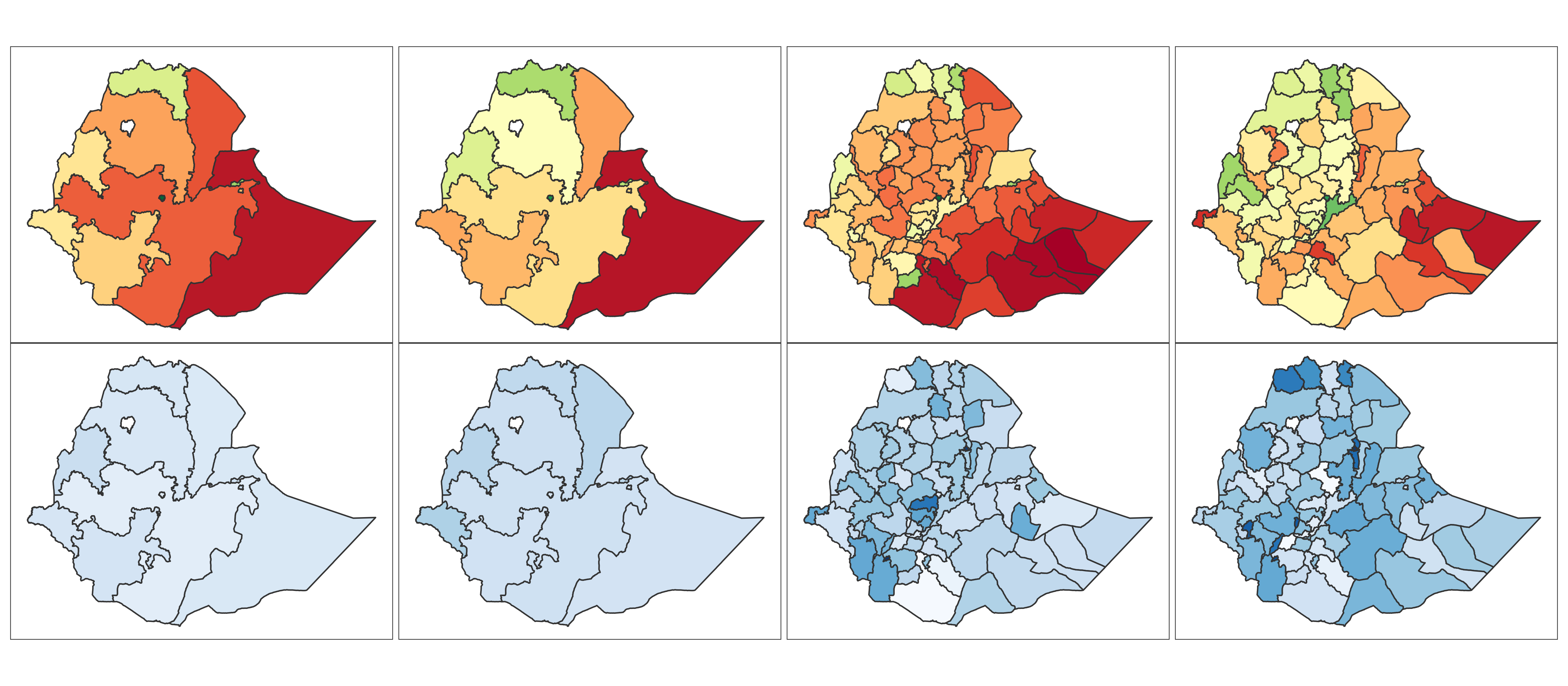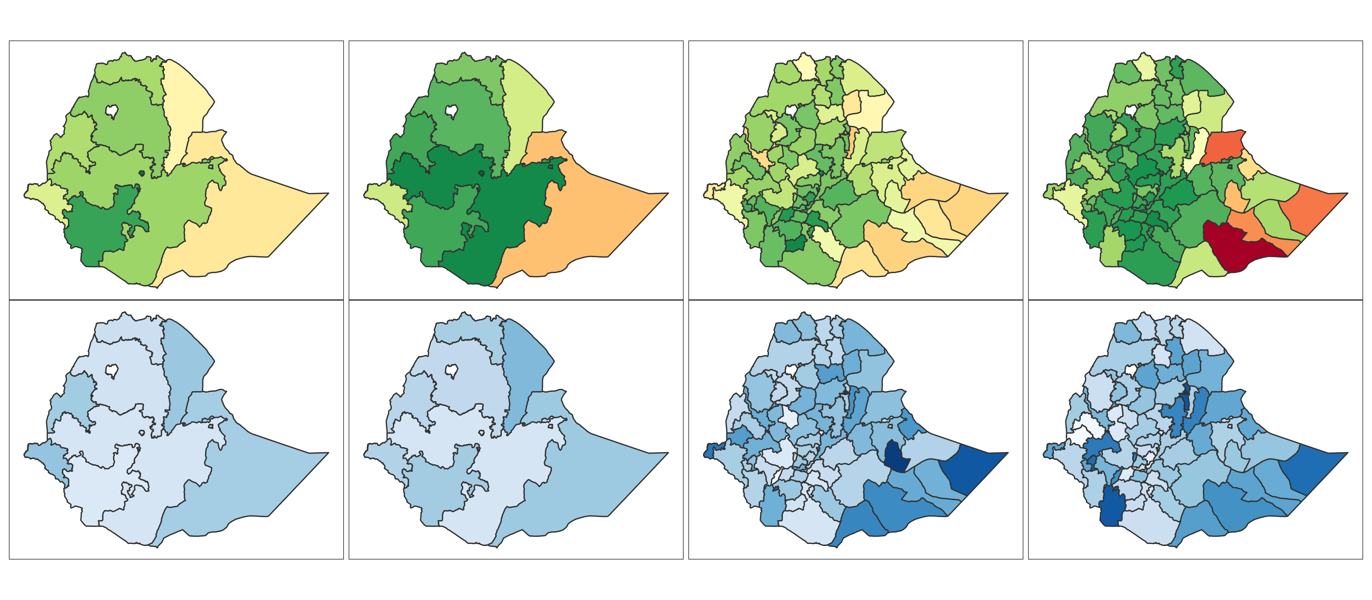 Ethiopia 📄 Download Report Regions Zones Baseline Latest Baseline Latest (2016) (2019) (2016) (2019) 4+ ANC Visits Delivery by Skilled Provider Delivery in Health Facility Modern Contra- ception DTP 3 coverage MCV 1 coverage No Vaccination received Stunting prevalence Wasting prevalence Women with secondary or higher education Women who are literate Lowest 2 Wealth Quintiles