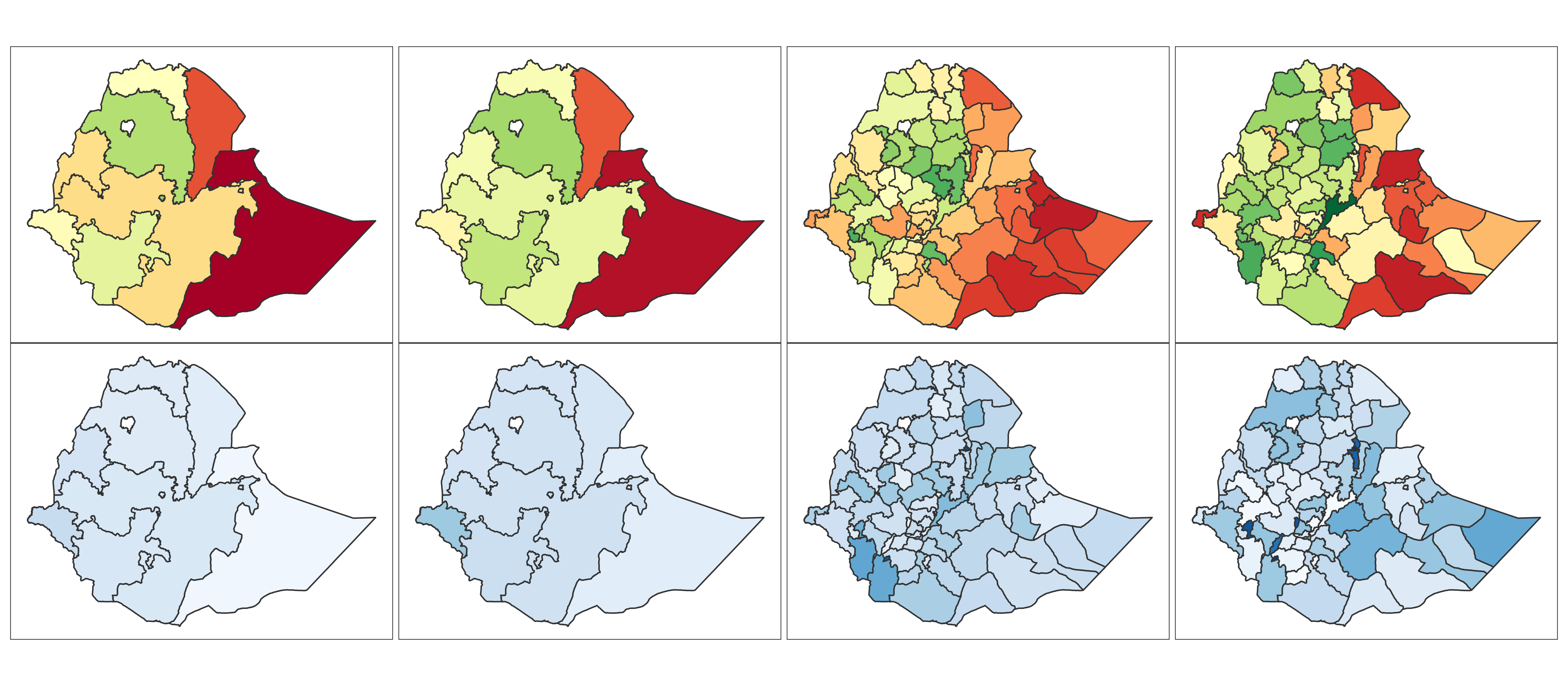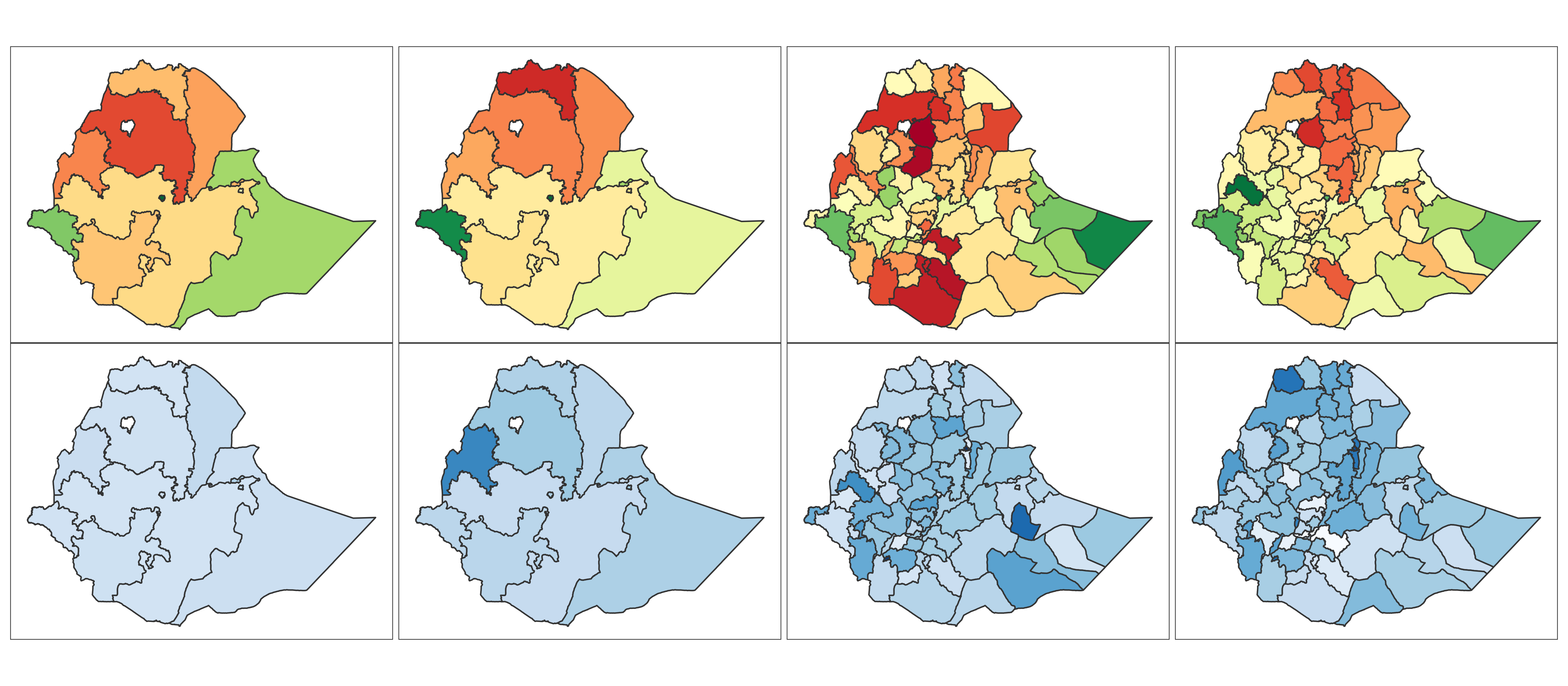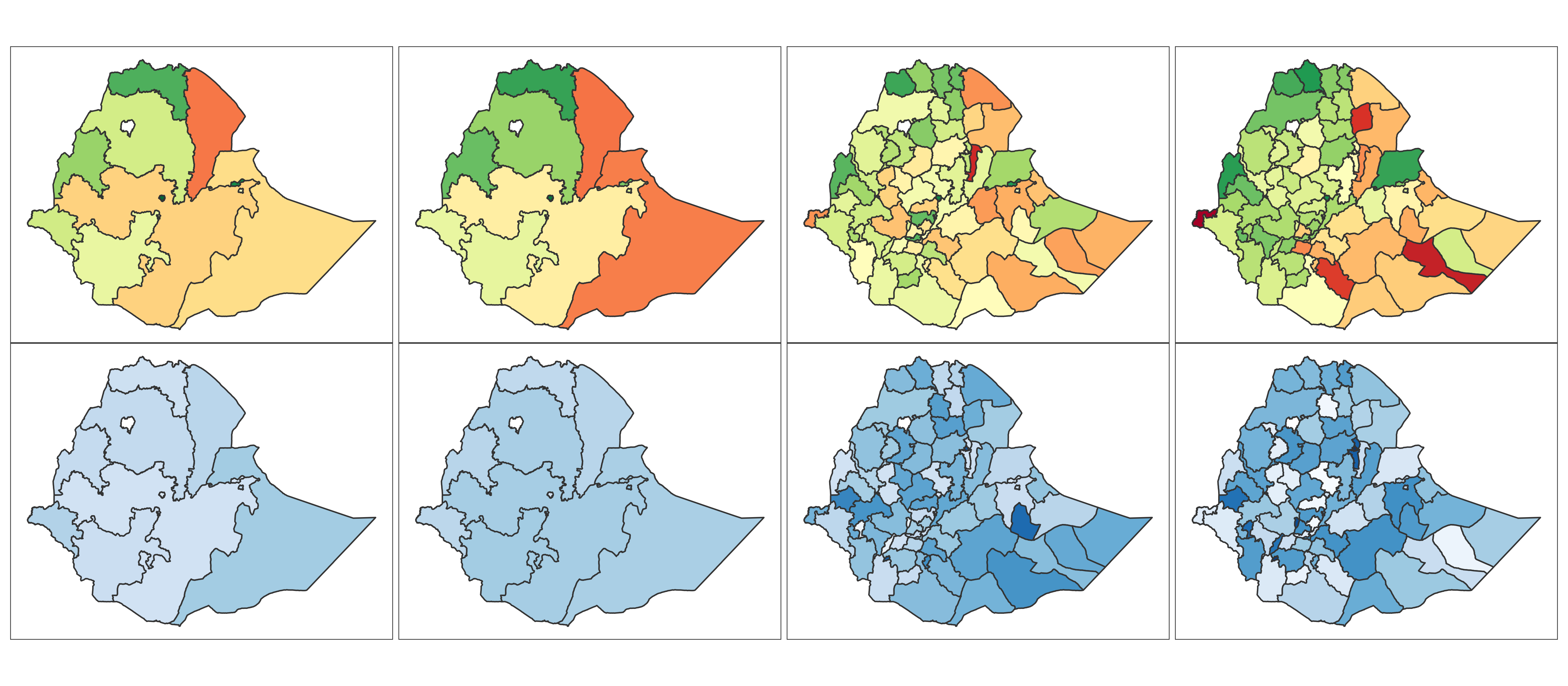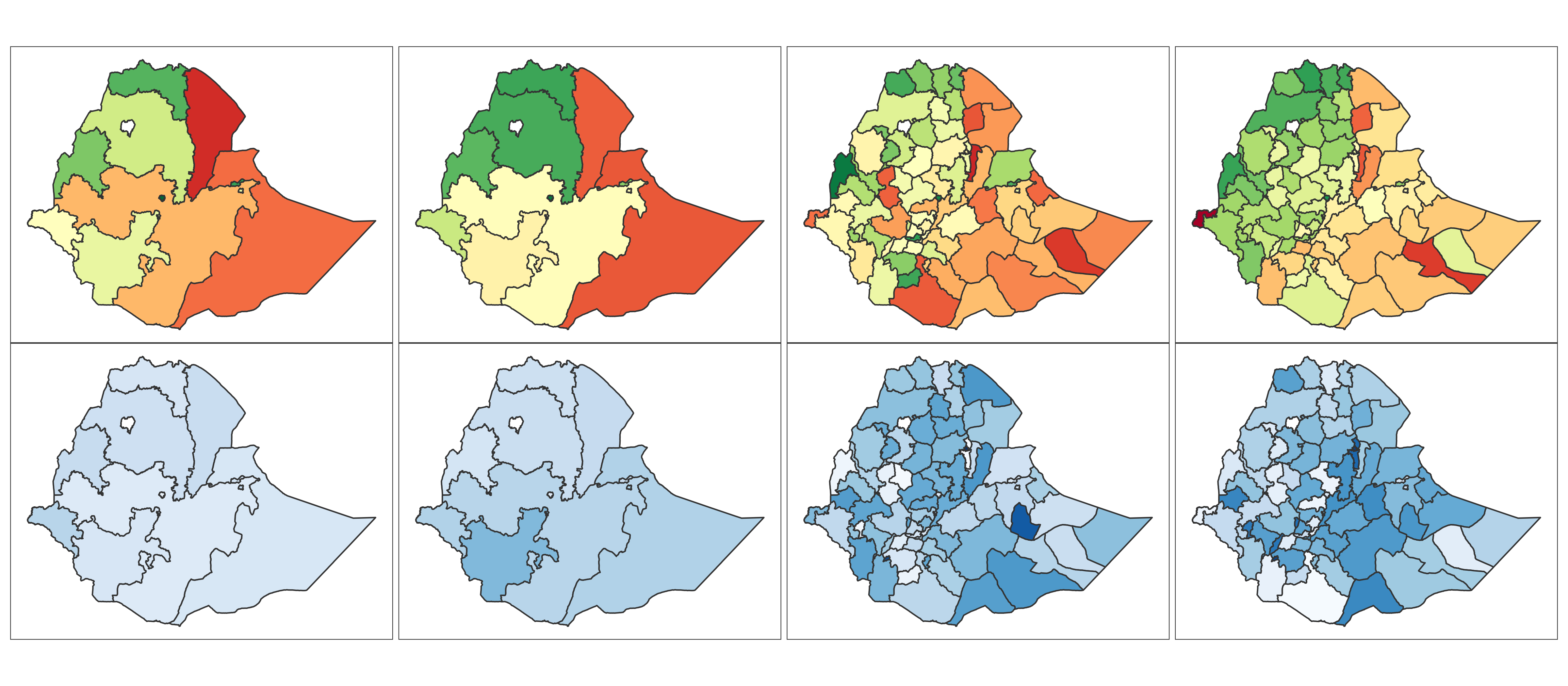 Ethiopia 📄 Download Report Regions Zones Baseline Latest Baseline Latest (2016) (2019) (2016) (2019) 4+ ANC Visits Delivery by Skilled Provider Delivery in Health Facility Modern Contra- ception DTP 3 coverage MCV 1 coverage No Vaccination received Stunting prevalence Wasting prevalence Women with secondary or higher education Women who are literate Lowest 2 Wealth Quintiles