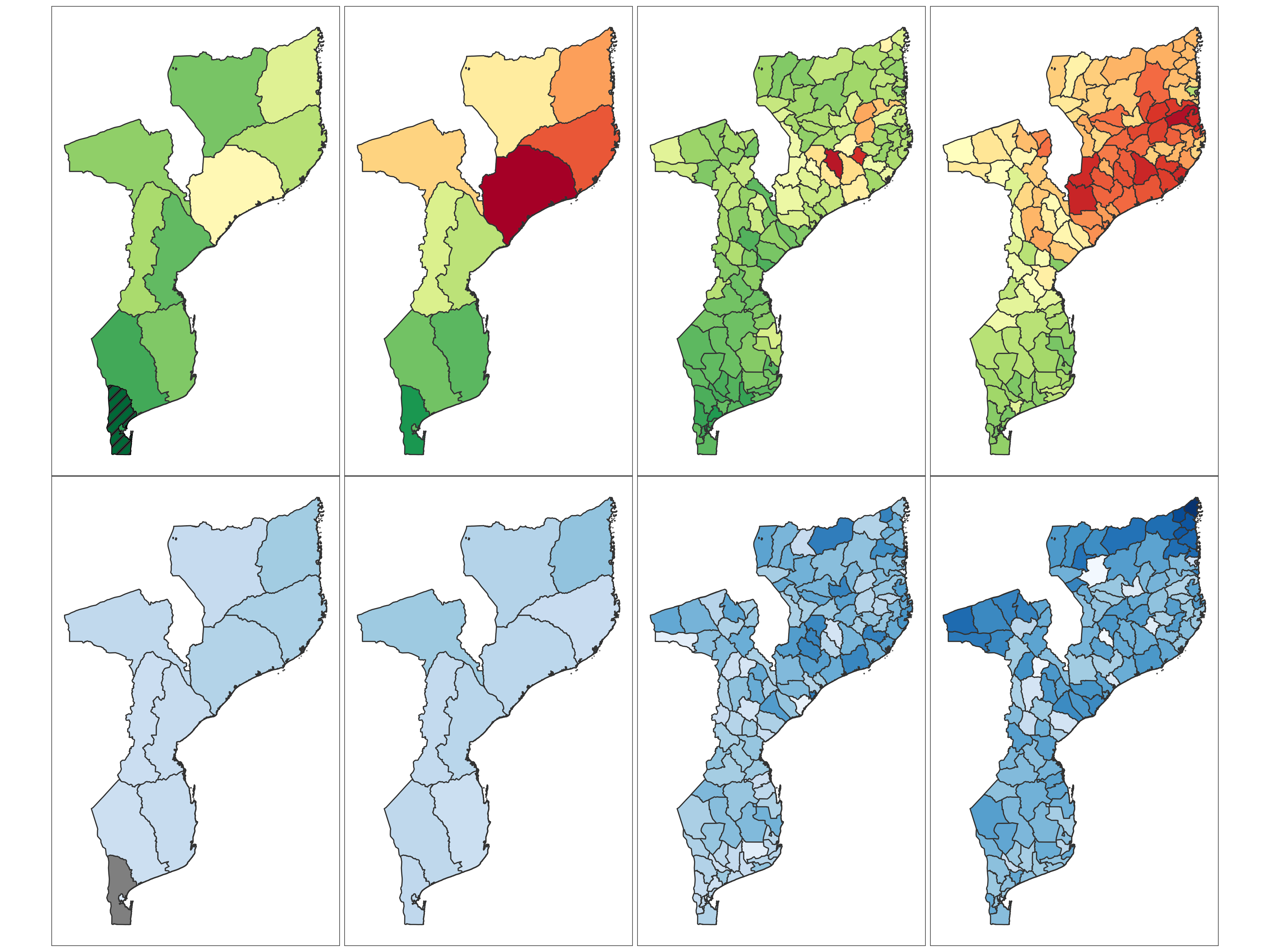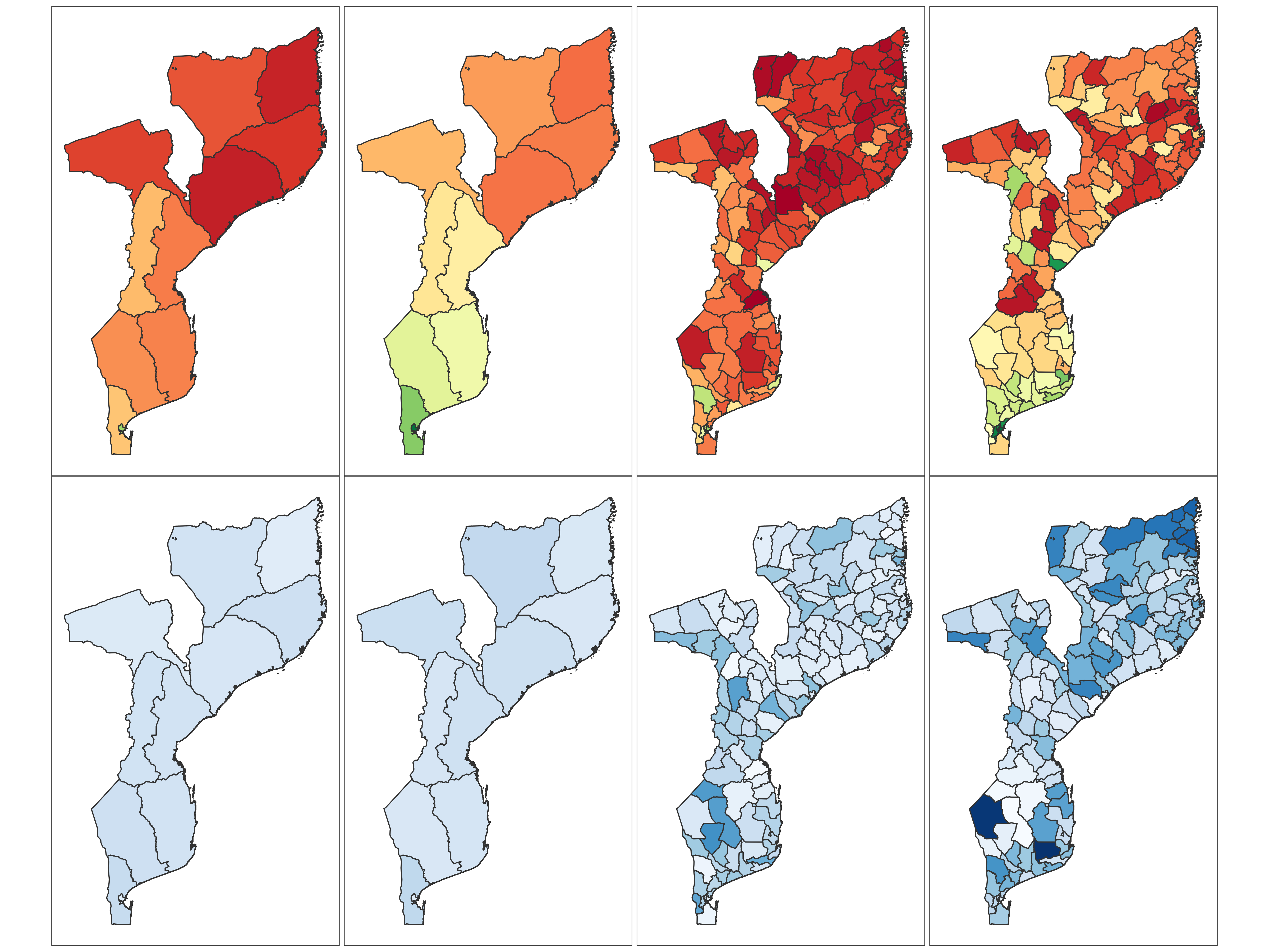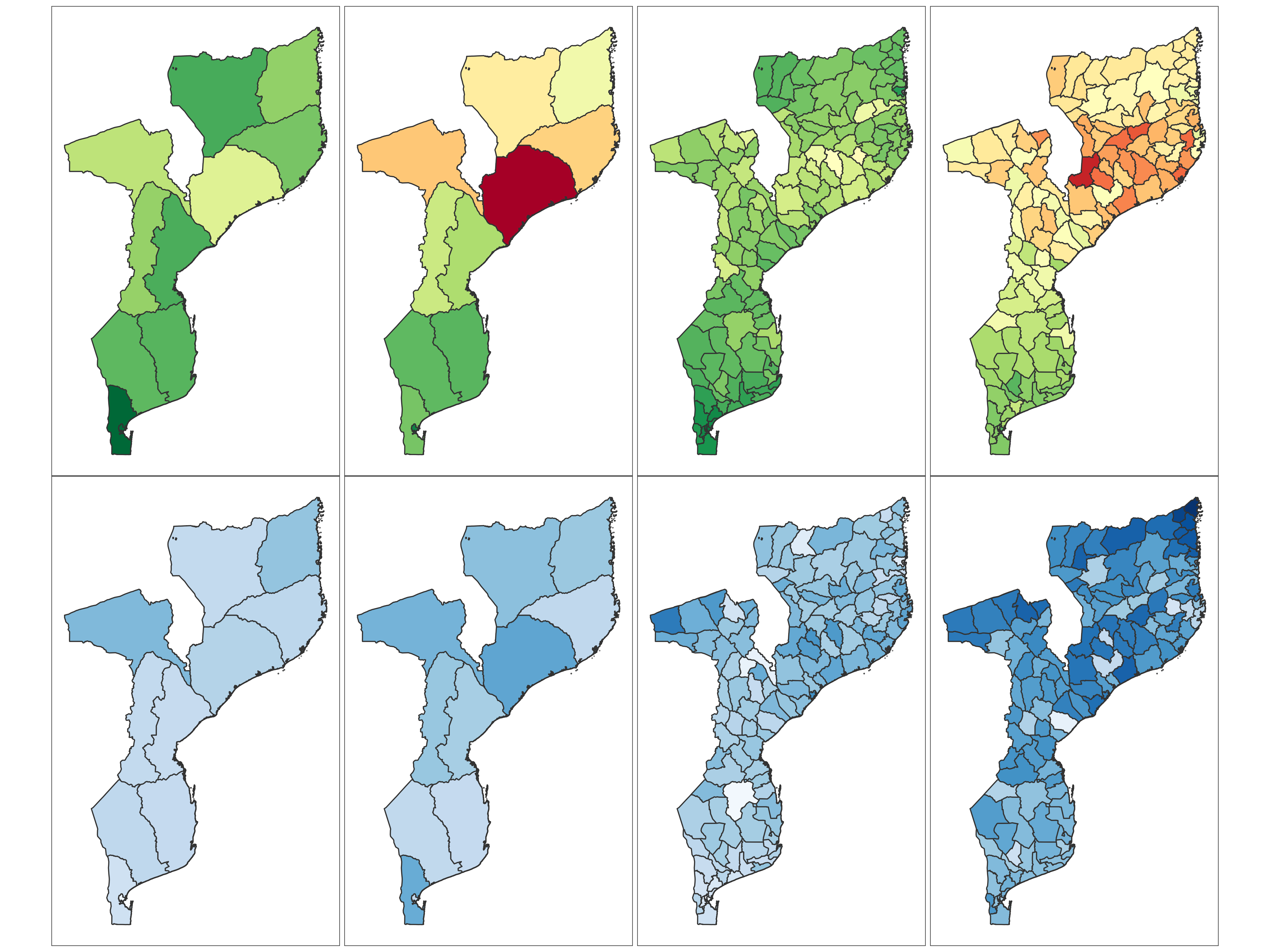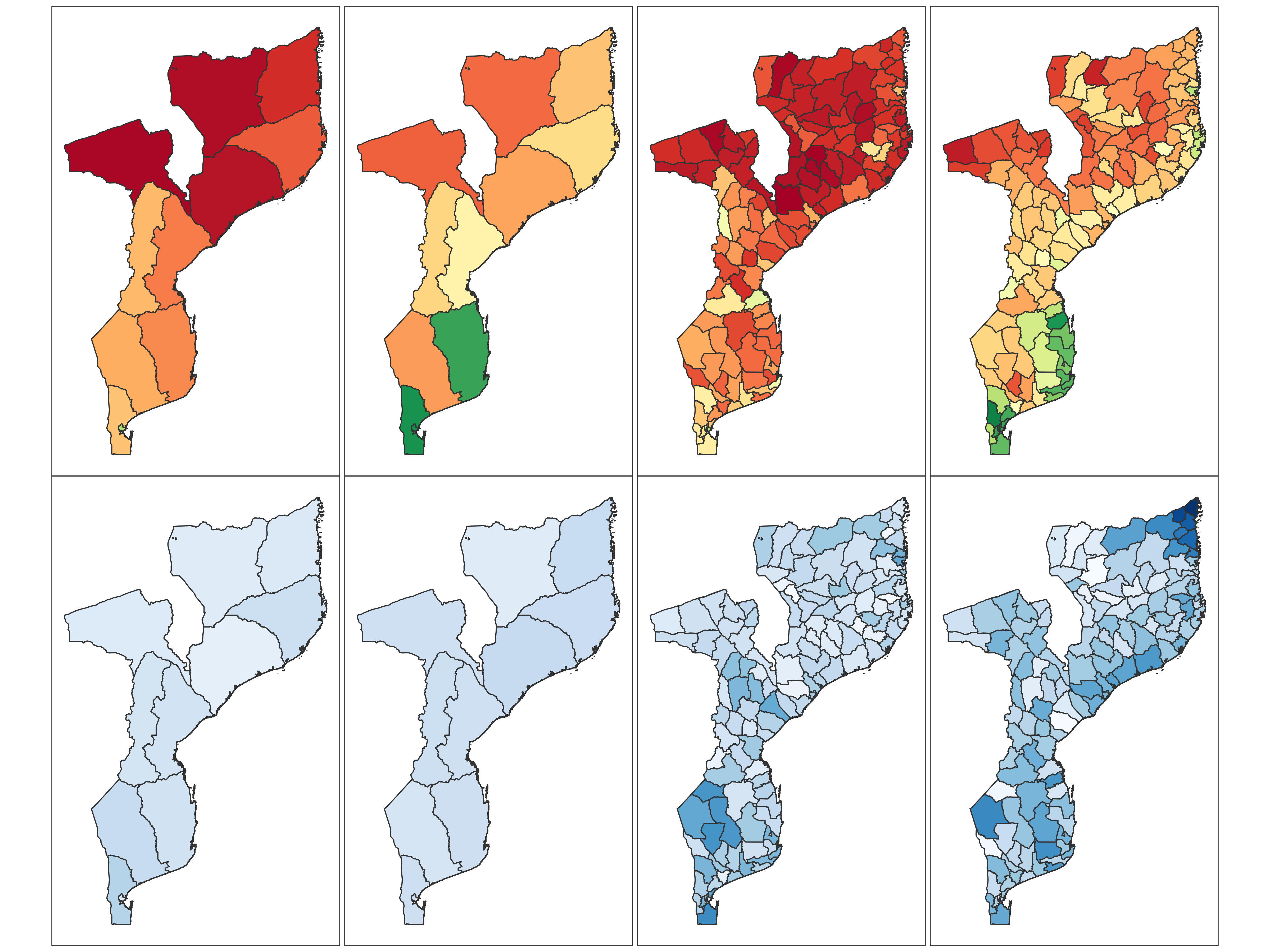 Mozambique 📄 Download Report Provinces Districts 2014 2022 2014 2022 DTP3 MCV1 No Vaccine Stunting Wasting ITN Mobile Phone Education Literacy Modern Contra- ception Lowest 2 Wealth Quintiles 4+ ANC Visits Delivery by Skilled Provider Delivery in Health Facility