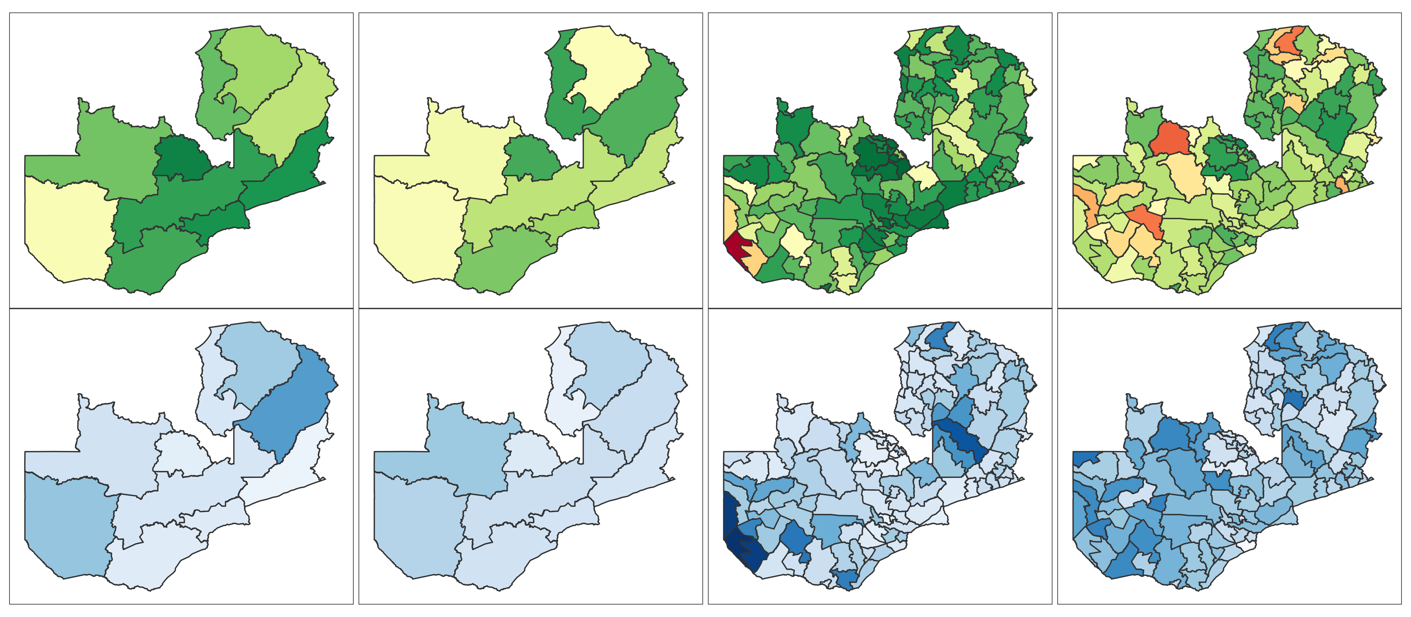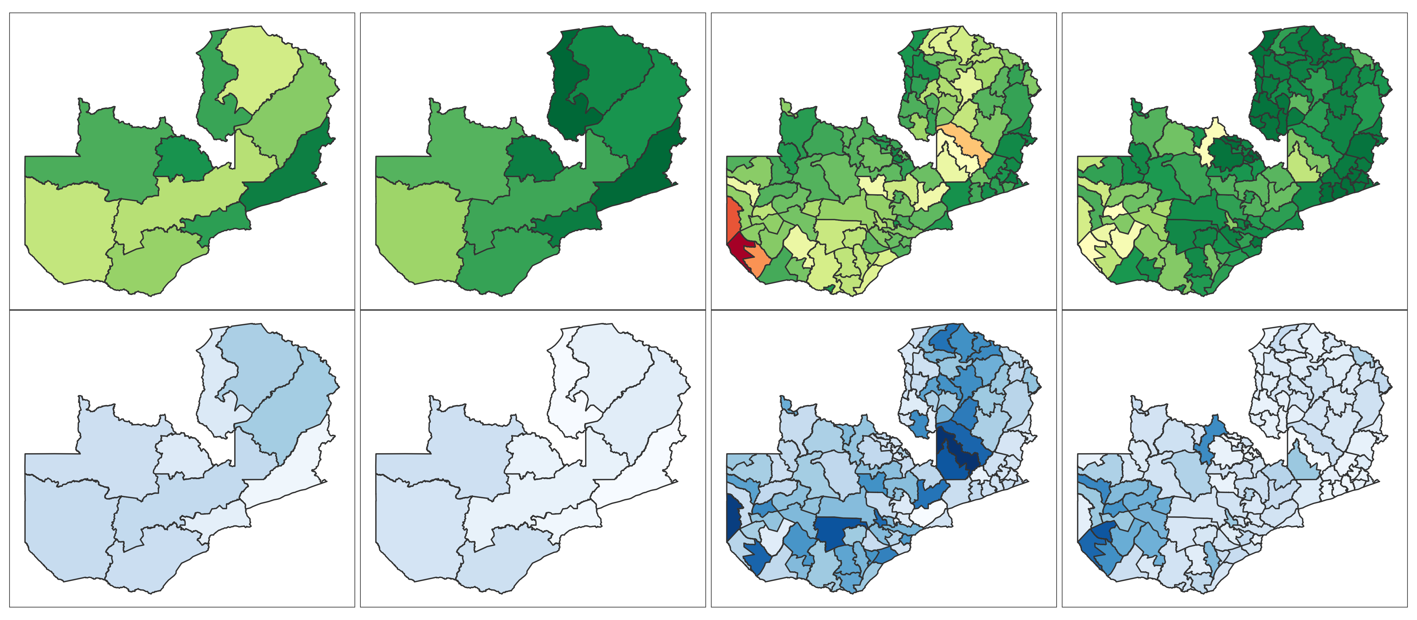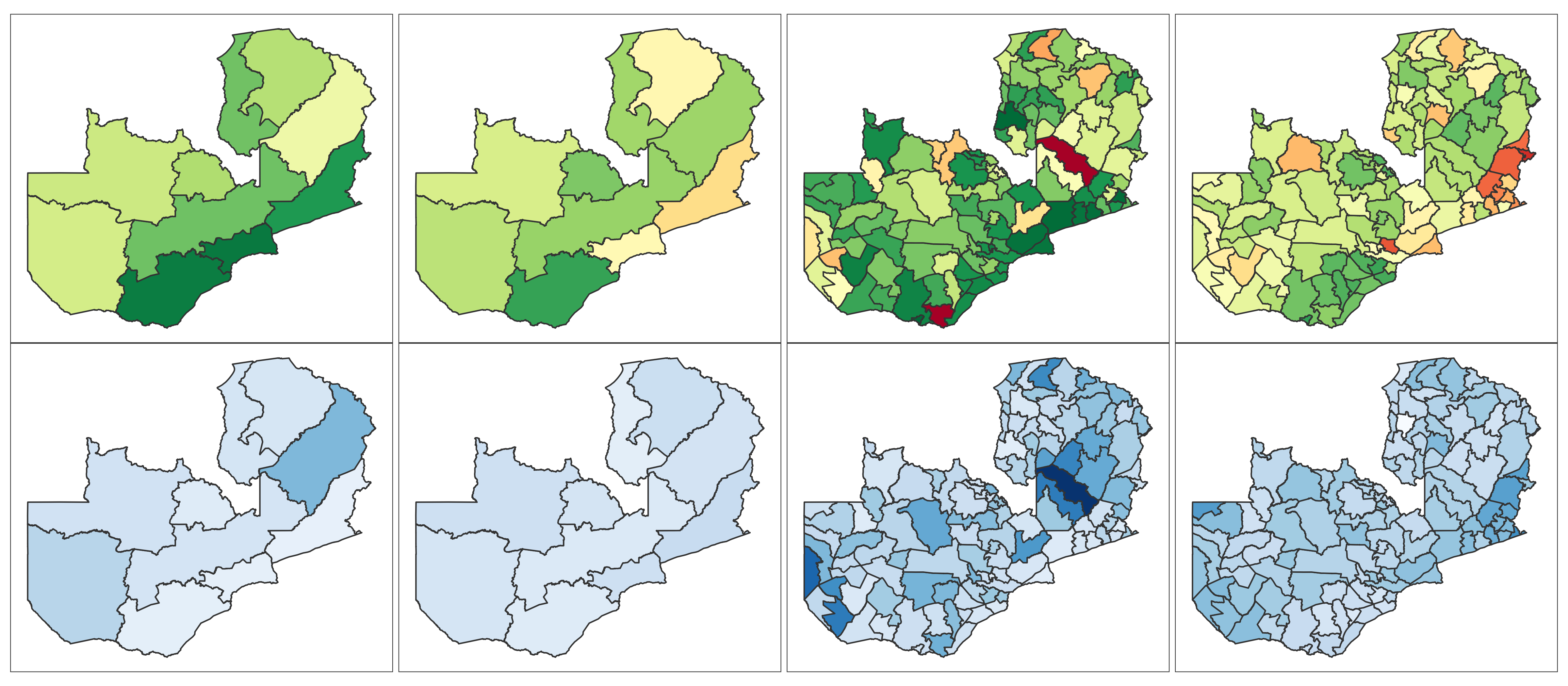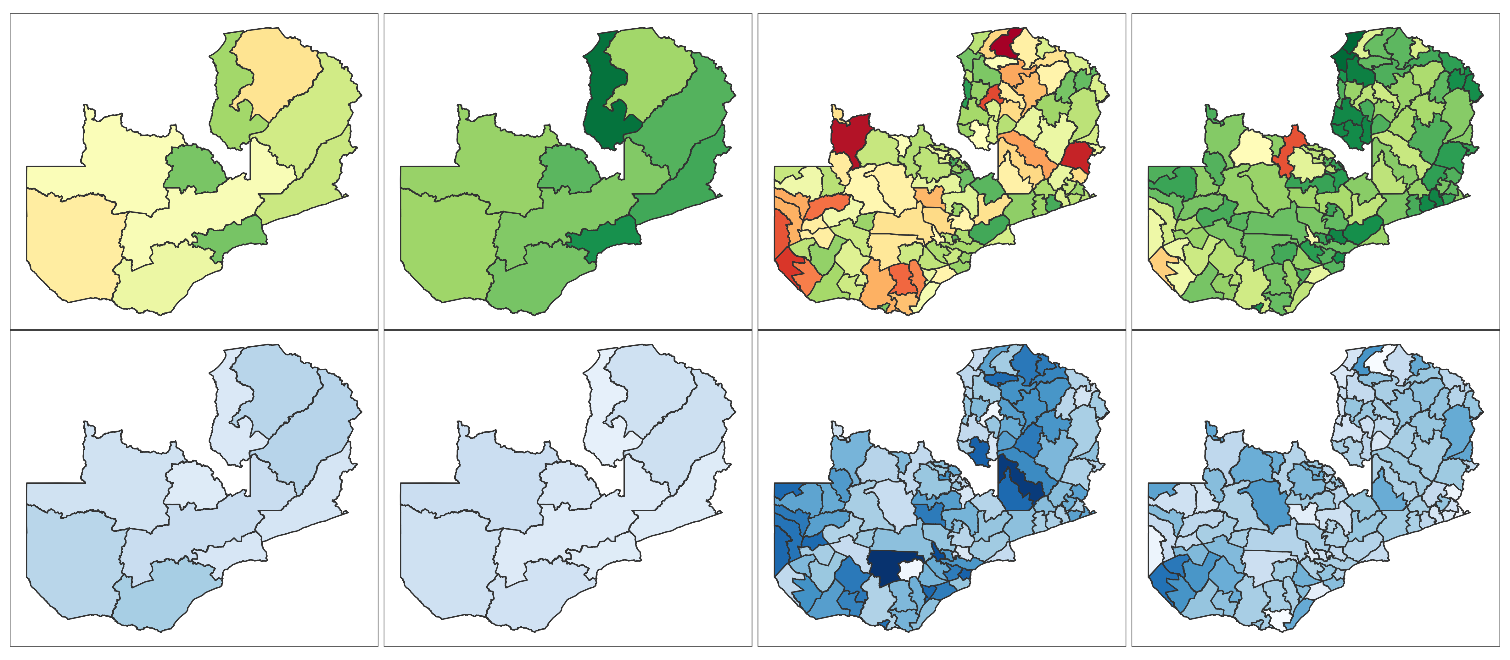 Zambia 📄 Download Report 📊 Download Estimates as CSV Provinces Districts Baseline Latest Baseline Latest (2018) (2024) (2018) (2024) Modern Contra- ception 4+ ANC Visits Delivery by Skilled Provider Delivery in Health Facility Delivery in Public Facility Delivery in Private Facility Delivery at home Newborn postnatal check-up MCV 1 coverage DTP 3 coverage No Vaccination received ITN use under 5 Diarrhea Treatment Women who are literate Women who own a mobile phone Women with secondary or higher education Lowest 2 Wealth Quintiles Neonatal Mortality Stunting prevalence Wasting prevalence