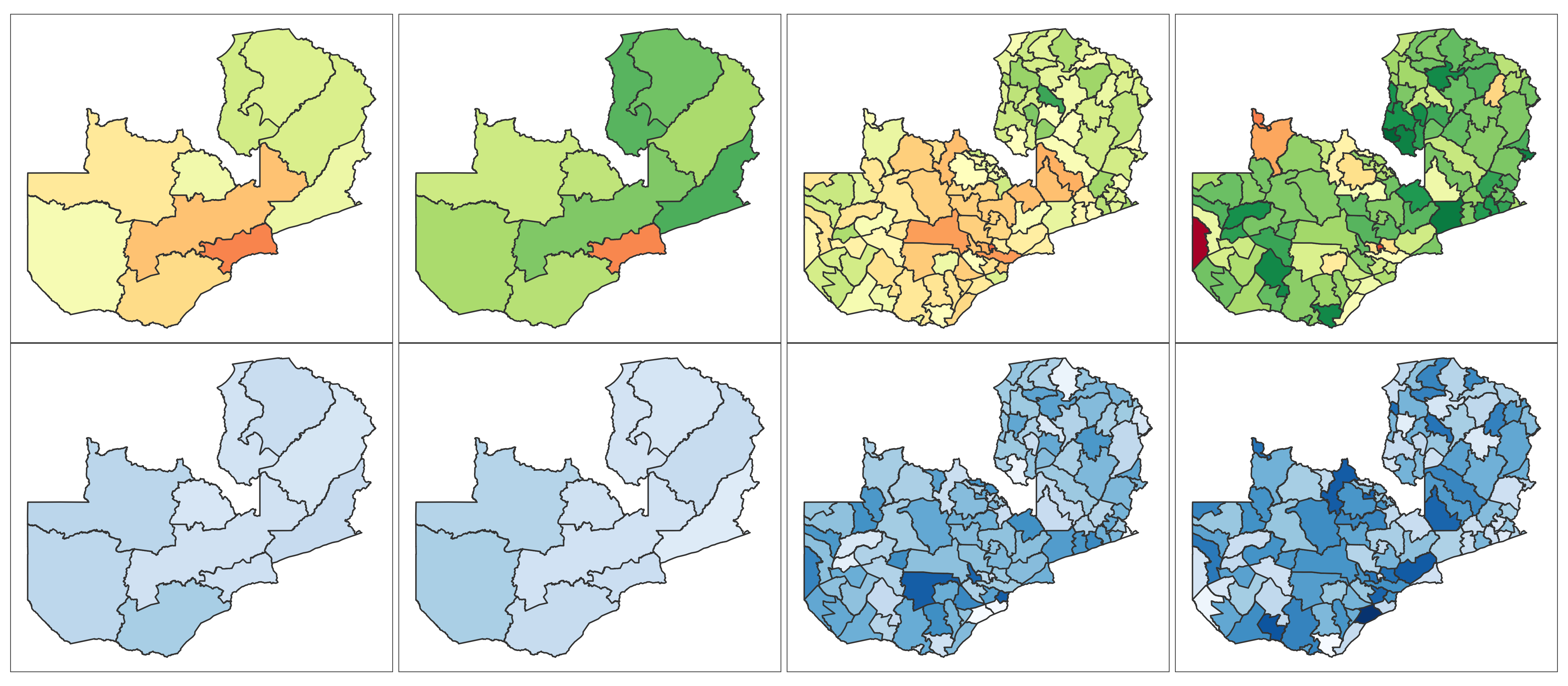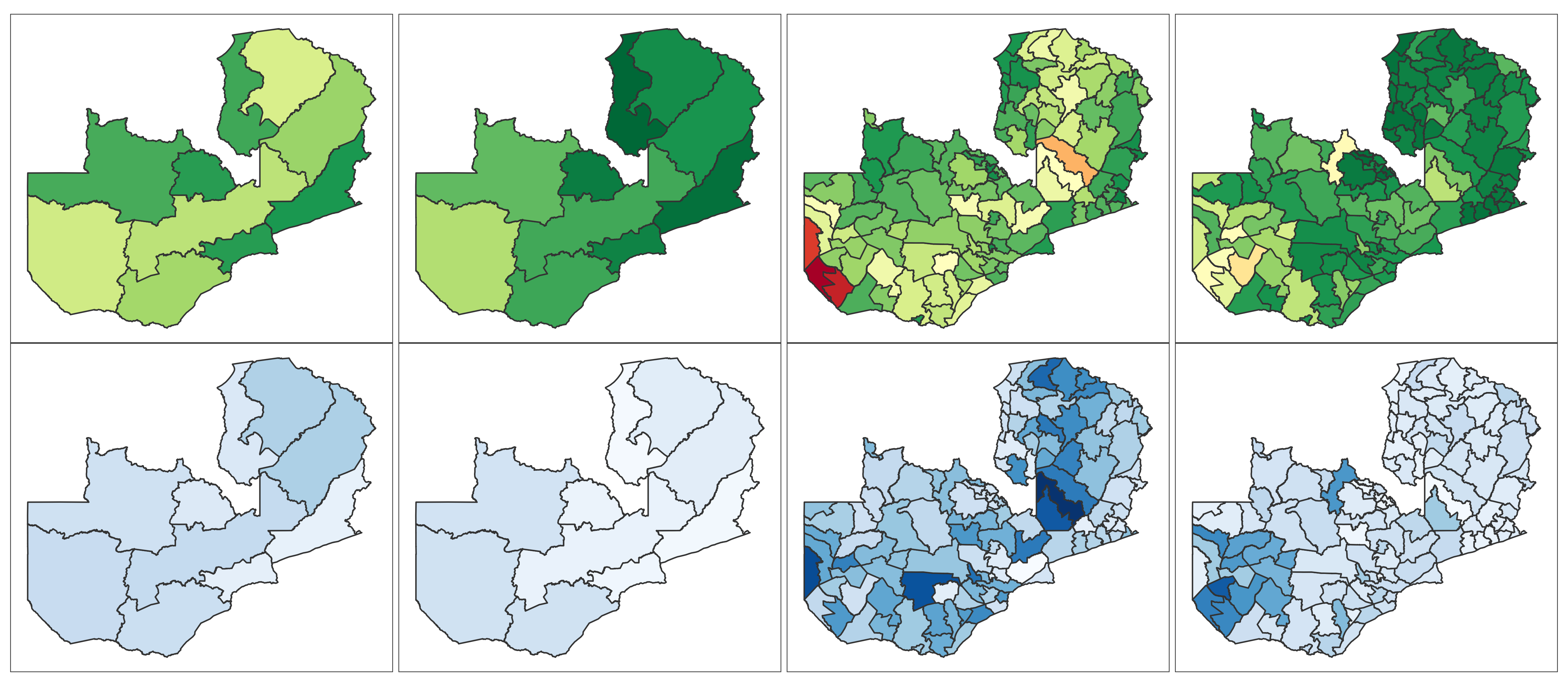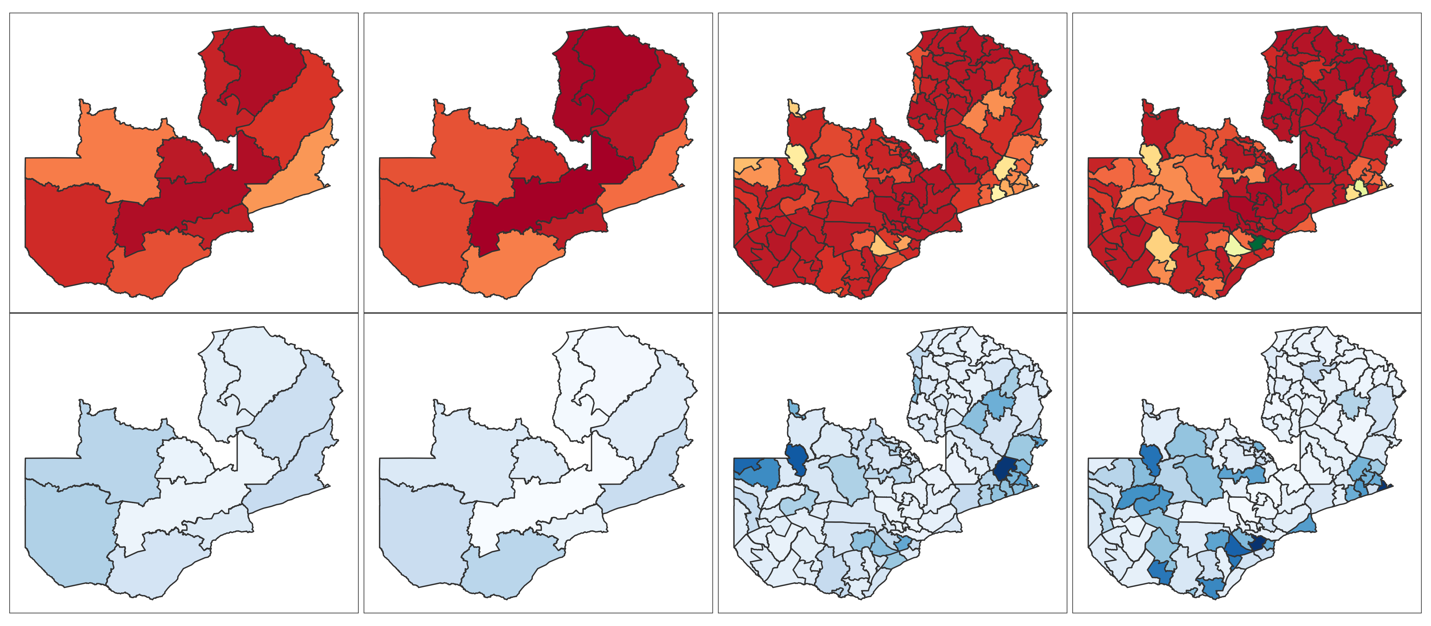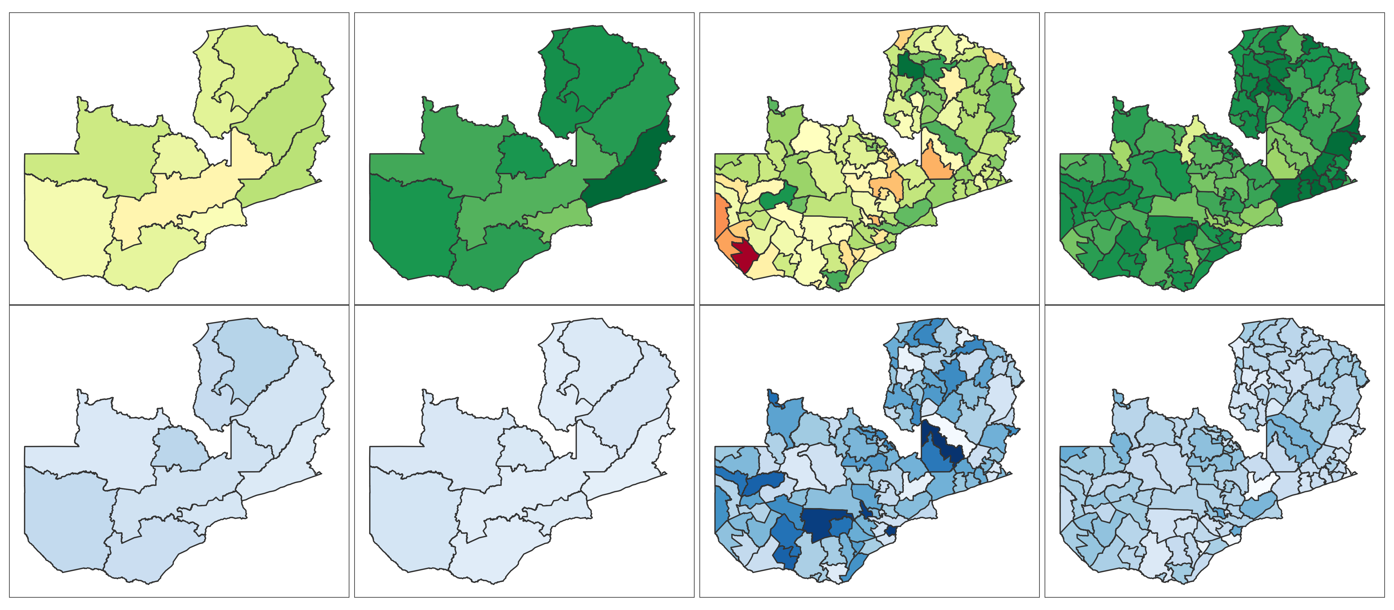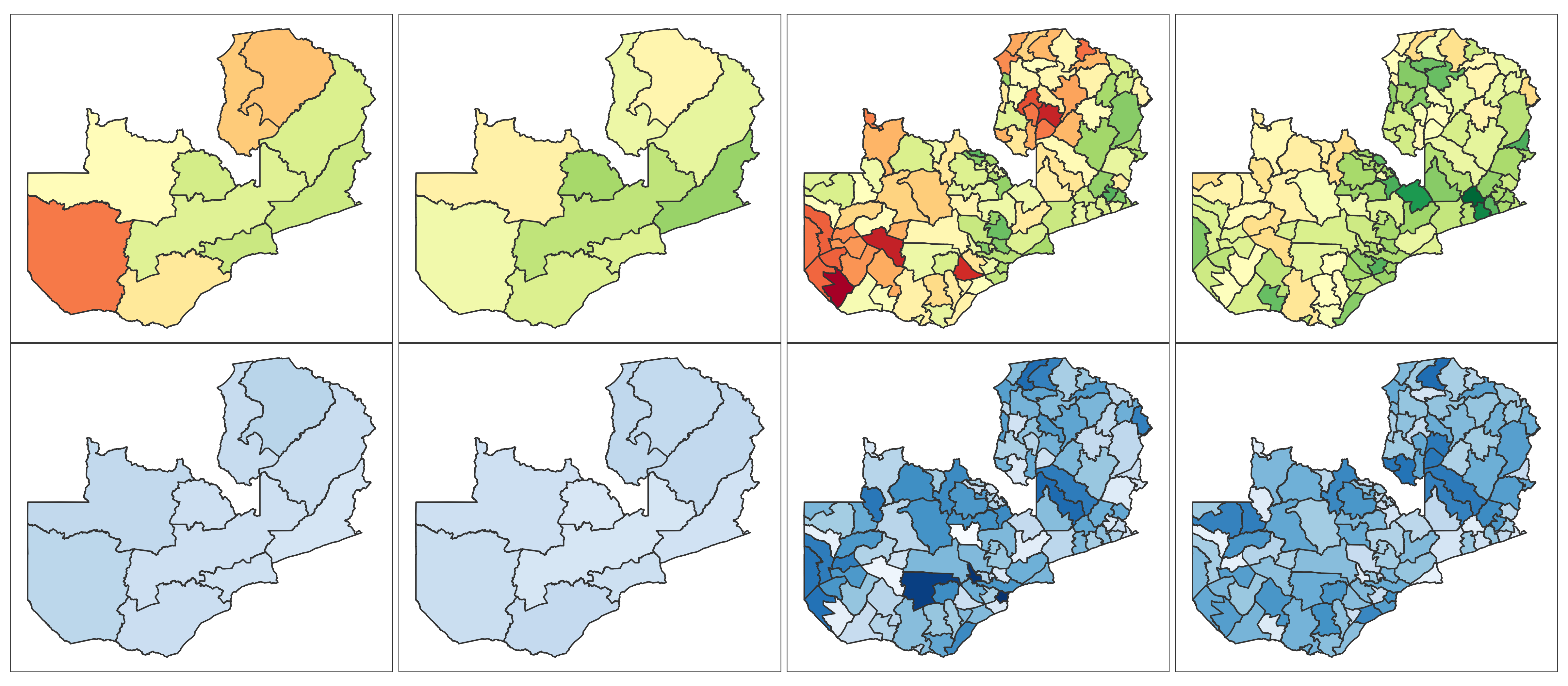 Zambia 📄 Download Report 📊 Download Estimates as CSV Provinces Districts Baseline Latest Baseline Latest (2018) (2024) (2018) (2024) Modern Contra- ception 4+ ANC Visits Delivery by Skilled Provider Delivery in Health Facility Delivery in Public Facility Delivery in Private Facility Delivery at home Newborn postnatal check-up MCV 1 coverage DTP 3 coverage No Vaccination received ITN use under 5 Diarrhea Treatment Women who are literate Women who own a mobile phone Women with secondary or higher education Lowest 2 Wealth Quintiles Neonatal Mortality Stunting prevalence Wasting prevalence